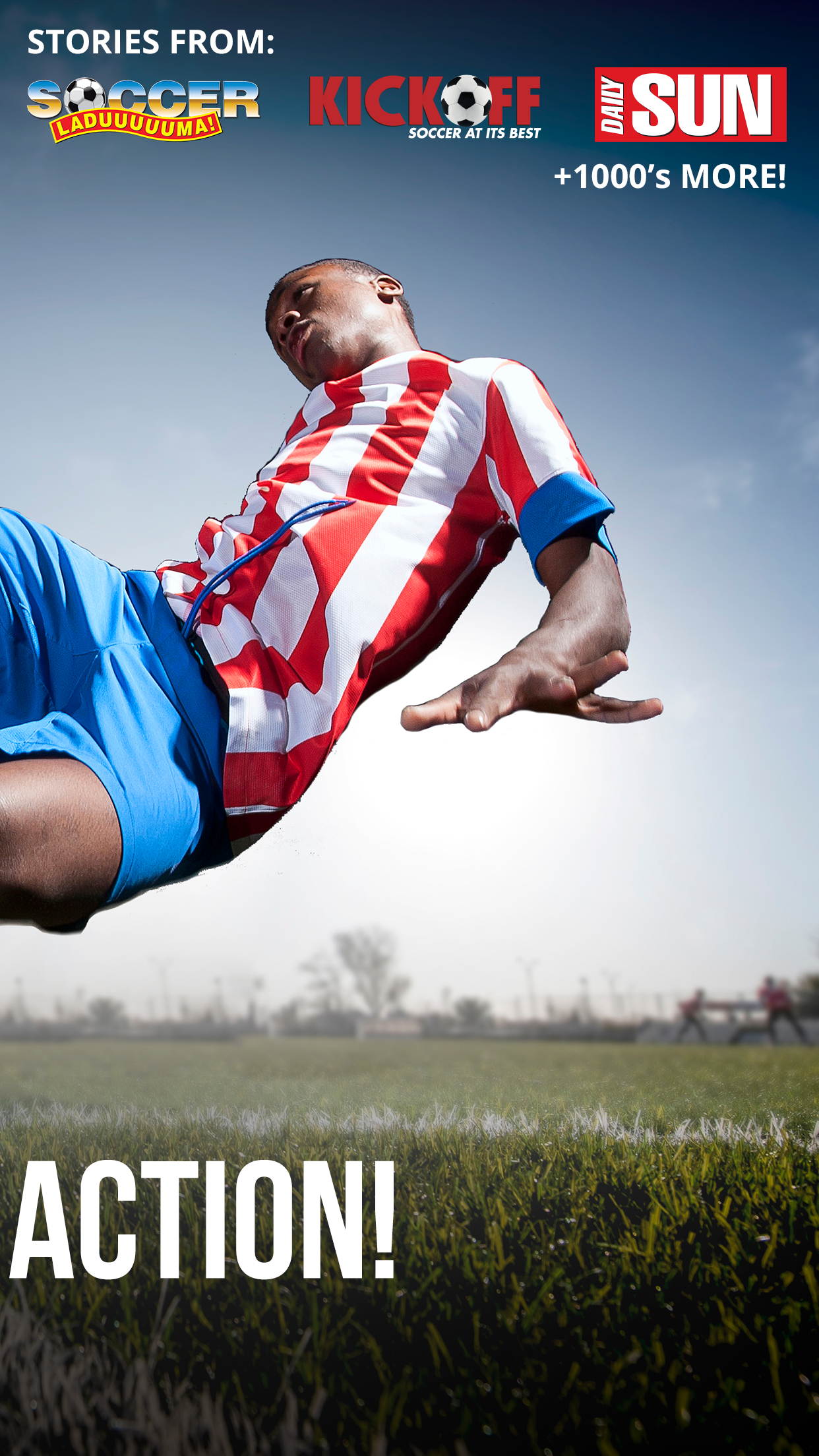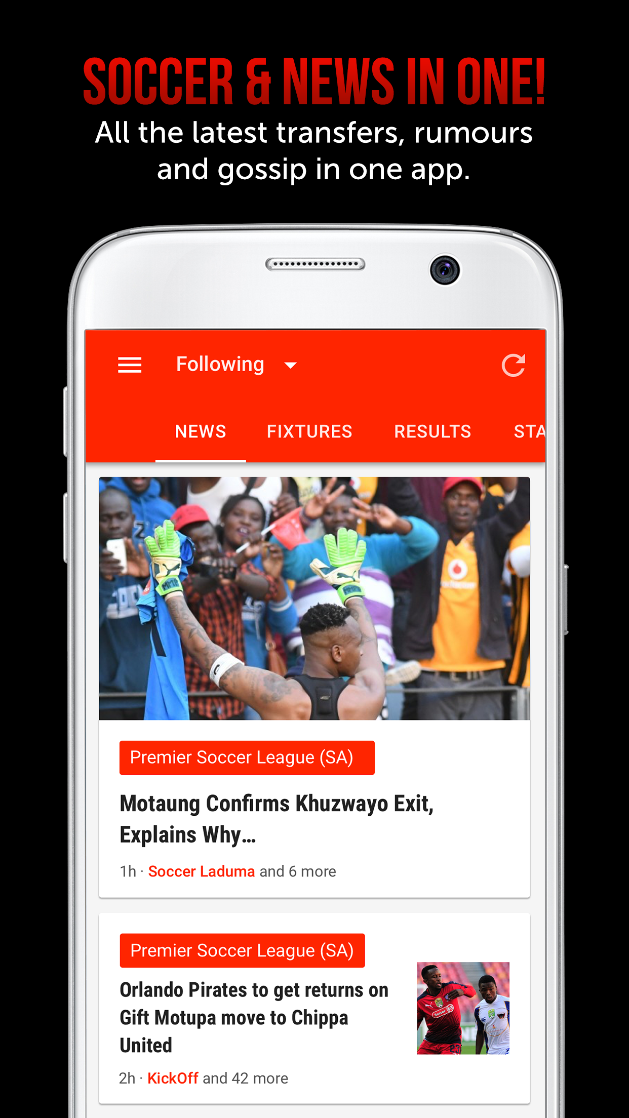 6.9MB, FREE to download and uses less data than any other mobi site to bring you all your favourite stories from Soccer Laduma, Kick Off, Daily Sun, Sport24 and more!!! Get the Daily Kick app now for all your soccer, news, live scoring, results, fixtures, logs and to follow your favourite local and international teams! You will never miss out on any Soccer action with Daily Kick. You don’t need to spend extra time or data visiting all your favourite sites to find the stories you want to read! They are all in one app. This is what makes Daily Kick the best soccer app!! 6.9MB, FREE, DATA LIGHT APP ★ Free to download. No more visiting multiple soccer sites. Plus change your image settings to use less data. SOCCER + NEWS IN ONE APP ★ All the latest transfers, rumours and gossip from Soccer Laduma, Kick Off, Daily Sun plus 1000’s more! FOLLOW YOUR TEAM ★ Follow your favourite local and international teams and never miss out on the action. LIVE SCORING + MORE ★ Get results, fixtures and logs for all your favourite soccer leagues. Including PSL, EPL and more. PERSONALISED ★ Choose your interests and get the stories you want to read! With a 4.6 start rating, our users LOVE Daily Kick: ★ “I love the update of all the best games of South Africa. I don't miss anything when comes to soccer.” ★"Gud app don't have to buy magazines and newspapers anymore and it keeps mi up-to-date with my favorite sport football" DAILY KICK ALL YOUR SOCCER. NEWS. LIVE SCORING IN ONE PLACE!!! THATHA ZONKE!!!