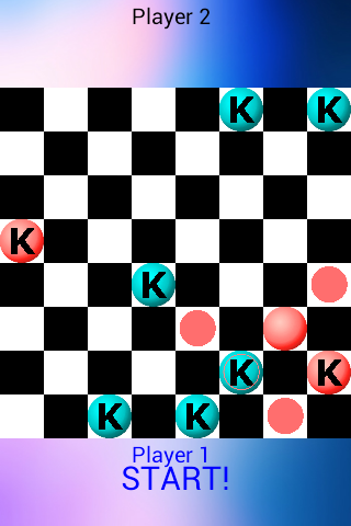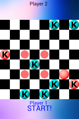 Checkers is a two-player game. Each player uses twelve playing pieces to start the game. The playing pieces can move forward only one square at a time in a diagonal direction to an empty square. You can captures the opponent’s piece by jumping over it into an adjacent and empty square beyond it. The captured pieces are removed from the board. A checkers move can consist of many jumps if more than one piece could be taken by continuing the jump; In a multiple jump, the Checker can change directions. A player cannot jump over his own Checkers. When a Checker reaches the last row of the opponent, it then becomes a King. A King can move either forward/ diagonally or backward/ diagonally, The player win when he capture all of the opposing Checkers or by blocking them