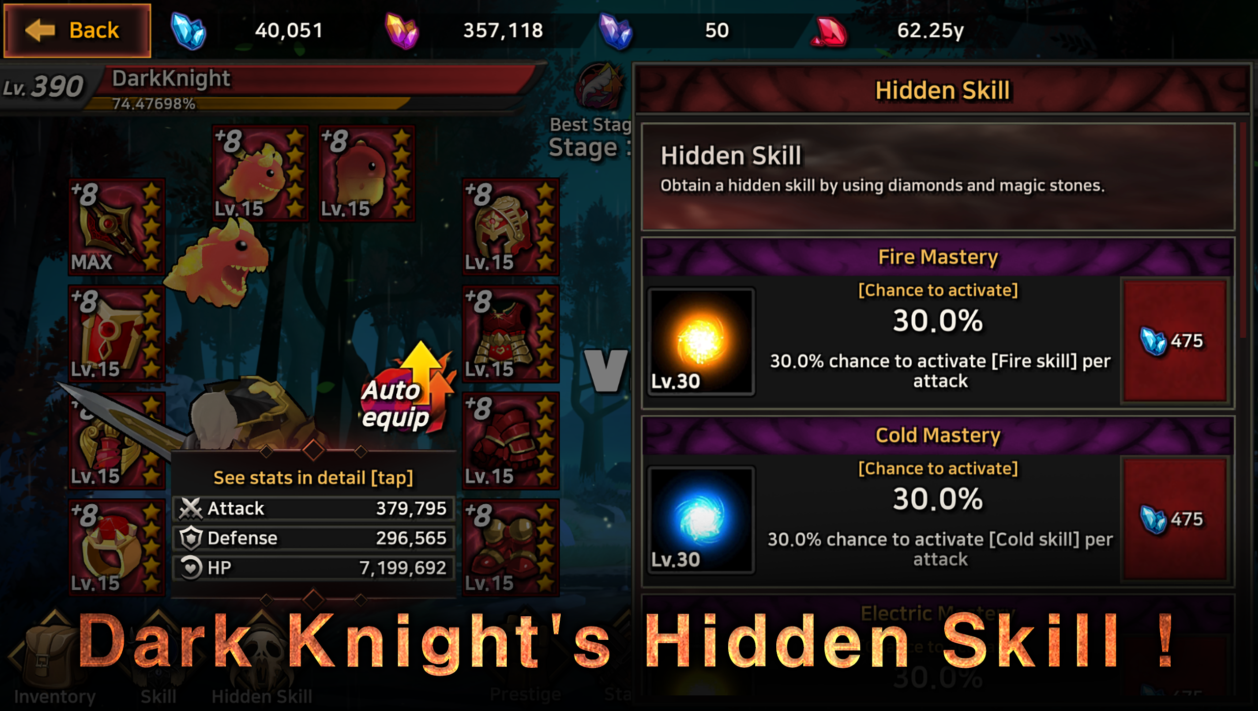 Don’t worry about auto hunting, auto skill, auto sales. Your dark knight will grow on his own.