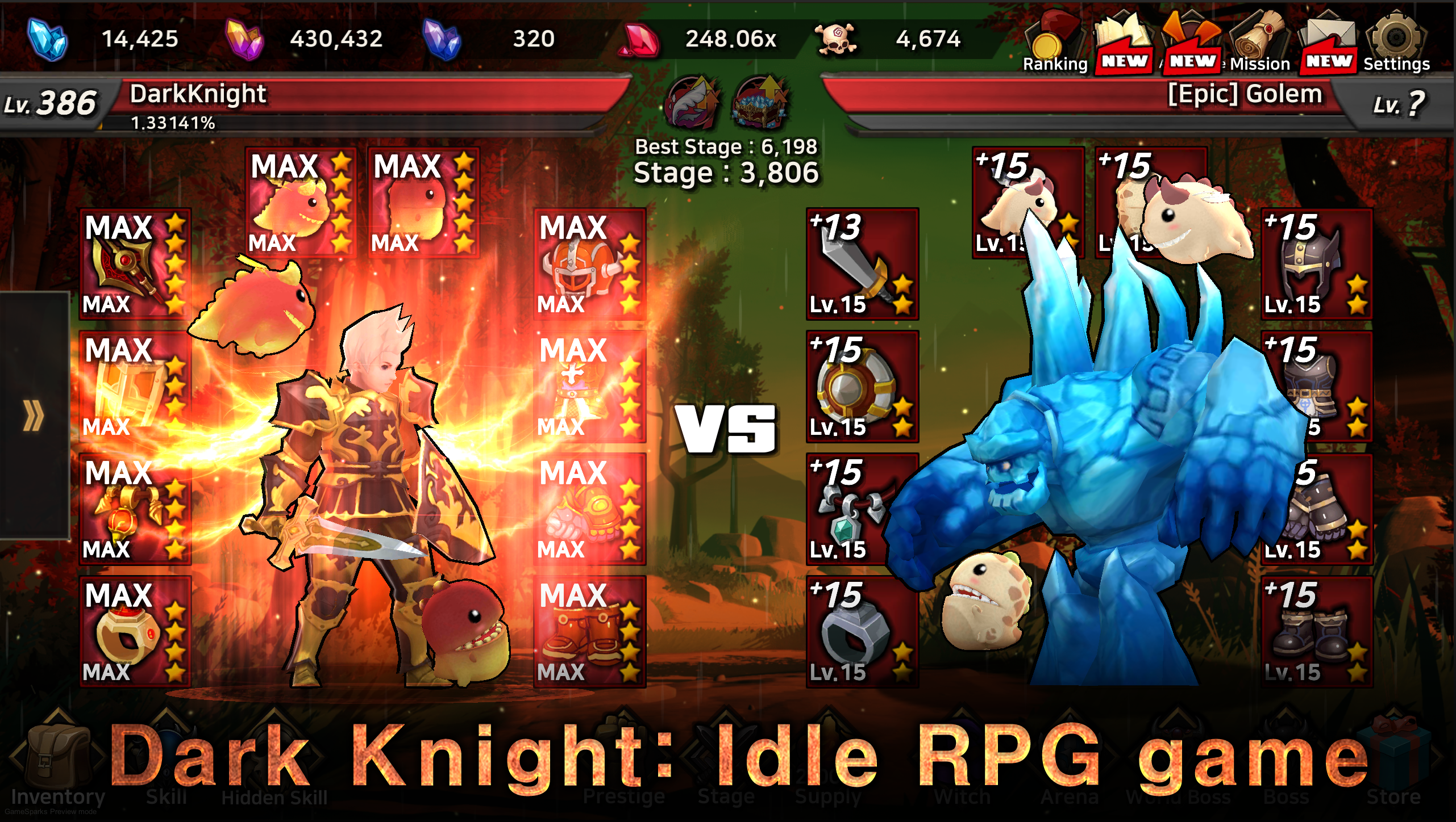 DarkKnight (Package Name: com.Bigbro.DarkKnight) is developed by BIGBRO and the latest version of Dark Knight : Idle RPG game 0.1122 was updated on May 13, 2022. Dark Knight : Idle RPG game is in the category of Role Playing. You can check all apps from the developer of Dark Knight : Idle RPG game and find 142 alternative apps to Dark Knight : Idle RPG game on Android. Currently this app is for free. This app can be downloaded on Android 5.0+ on APKFab or Google Play. All APK/XAPK files on APKFab.com are original and 100% safe with fast download.