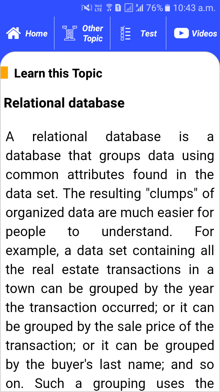 Check out New Learning Videos! We have Added • Chapter and topics made offline access • New Intuitive Knowledge Test & Score Section • Search Option with autoprediction to get straight the your topic • Fast Response Time of Application • Provide Storage Access for Offline Mode