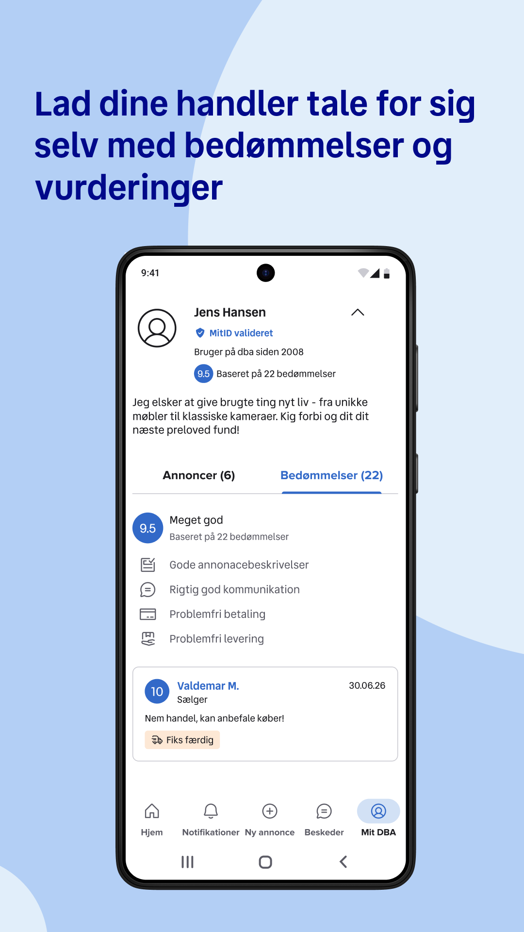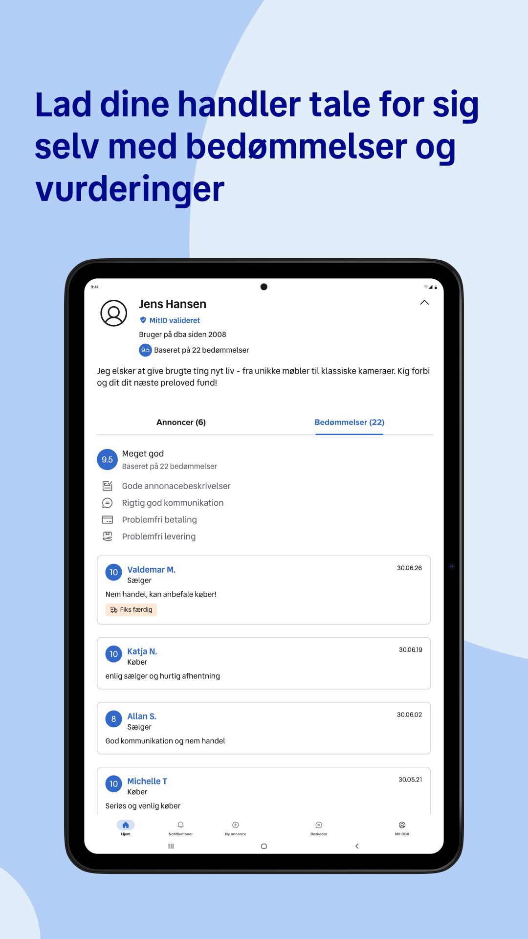 Sell what you no longer use – and earn money. Buy used – and save money. It's sustainable. Both for you, the wallet, and the planet. Win, win! DBA’s app makes it easy to buy and sell second hand on Denmark's largest online marketplace. Here you can trade recycled goods with more than 1 million users and explore more than 2 million ads. On DBA you will find what you need – and what you dream of. SIMPLE AND SECURE DELIVERY With DBA's shipping solution, your package is quickly and securely on the move. Choose your preferred shipping provider, specify the package size, pay – all in the app :) CUSTOMER SERVICE EVERY DAY, ALL YEAR Safe trade and personal help are very important to us. That's why DBA's customer service is ready to help every day from 8:00 am to 10:00 pm, all year round. ALL OF DBA AT YOUR FINGERTIPS Search, buy, create, sell – and much more. With the app, you have all of DBA at your fingertips and can trade fantastic pre-loved items, wherever and whenever it suits you.