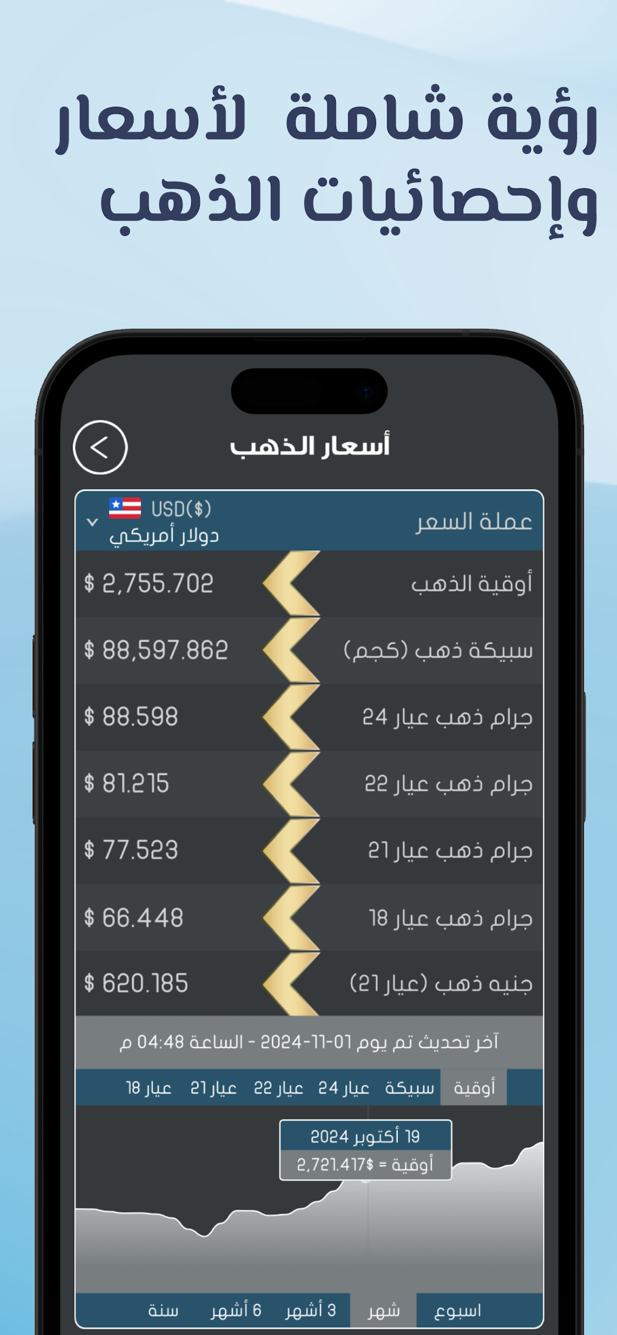 ›Verfolgen Sie die Goldpreise in verschiedenen Kalibern in Ihrer bevorzugten Währung mit detaillierten Diagrammen in verschiedenen Zeiträumen