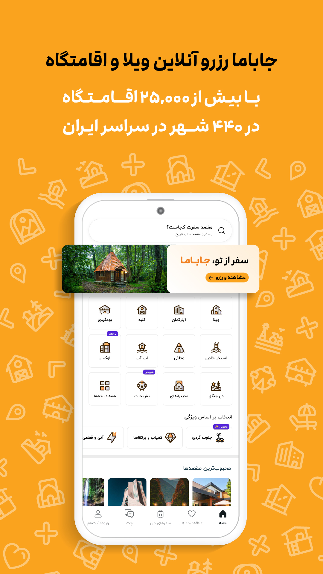 • امکان ذخیره اقامتگاههای مورد علاقه