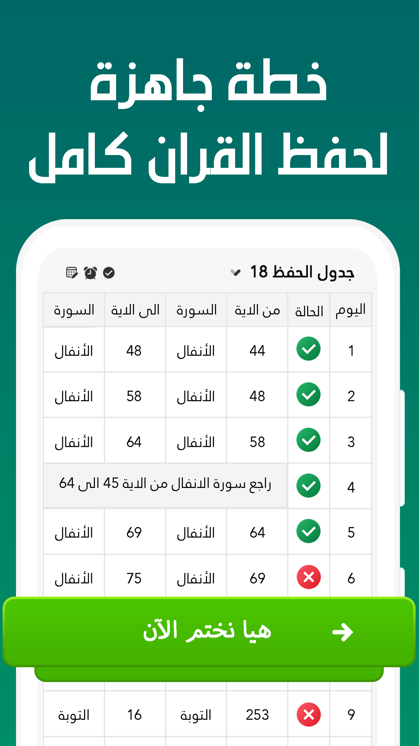 Der Zeitplan zum Auswendiglernen des Korans ist ein organisiertes Programm zum Auswendiglernen des Heiligen Korans, das einen Plan zum Auswendiglernen des Korans mit Koranrosen enthält, der Ihnen hilft, den Koran in einer Woche, einem Monat, einem Jahr oder zwei Jahren fertigzustellen, abhängig von Ihrer Fähigkeit zum Auswendiglernen. Das Auswendiglernen des Heiligen Korans ist mit der Anwendung, die die Möglichkeit bietet, den Heiligen Koran zu lernen und schnell auswendig zu lernen, einfacher geworden. Lassen Sie uns also jetzt zum Schluss kommen! Durch die Möglichkeit, das Auswendiglernen des gesamten Korans zu lernen, können Sie auf den täglichen Juz-Amma-Zeitplan mit einem täglichen Gottesdienstplan zugreifen, um die Zeit zum Auswendiglernen festzulegen und zu organisieren. Mithilfe der Funktion zur Verfolgung des Auswendiglernens von Moment zu Moment ist es für Benutzer einfach, ihre Fortschritte beim Auswendiglernen des Korans zu verfolgen. Sie können auch an Wettbewerben zum Heiligen Koran teilnehmen und sich durch das gesamte Projekt zum Auswendiglernen des Korans motivieren. Die Anwendung bietet außerdem Tipps zum Auswendiglernen des gesamten Korans und Auswendiglerntechniken zur Verbesserung des Auswendiglernens, gesprochen von Al-Afasy, Abdel Basit Abdel Samad, Saad Al-Ghamdi und Muhammad Al-Siddiq Al-Minshawi mp3. Es ermöglicht auch das Auswendiglernen des Heiligen Korans mit Wiederholung ohne Internet, Ton und Bild, geschrieben in großer Schrift. Tägliche Gebete und tägliche Gebete aus dem Koran sorgen für eine Atmosphäre der Meditation und Spiritualität, während der leicht zu merkende Koran ein einfaches und angenehmes Leseerlebnis bietet. Der Zeitplan zur Erleichterung des Auswendiglernens des Korans ermöglicht die Anpassung eines Auswendiglernplans, der den Umständen und Fähigkeiten des Einzelnen entspricht. Mehr Funktionen: - Tabelle zur Erleichterung des Auswendiglernens des Korans - Den Koran auswendig lernen für Erwachsene - Tägliche Rezension des Korans - Installieren Sie die Hupendichtung - Verse des Heiligen Korans - Koranhauben - Wettbewerb zum Auswendiglernen des Korans - Zeitplan für die Durchsicht des Heiligen Korans - Planen Sie, den Koran im Ramadan auswendig zu lernen Zusammenfassend lässt sich sagen, dass die Anwendung eine tägliche Rezitation mit der Möglichkeit bietet, die Zeit zum Auswendiglernen des Korans auf effektive und motivierende Weise zu organisieren und Benutzern dabei hilft, den Heiligen Koran auf unterhaltsame, schnelle und präzise Weise zu vervollständigen. Die Reise des Auswendiglernens des Korans spiegelt die persönlichen Erfahrungen des Benutzers bei der Vervollständigung des Korans wider, und mit einem Herzen voller Koran müssen Sie die Absicht zum Auswendiglernen erneuern, um die Verpflichtung aufrechtzuerhalten. Die Anwendung fördert auch das Erreichen neuer Ziele durch die Herausforderung, den Koran auswendig zu lernen. Stellt sicher, dass Sie einen Zeitplan für das Auswendiglernen des Korans haben. Die Anwendung bietet Techniken zum Auswendiglernen des Korans. Darüber hinaus bietet sie die Möglichkeit, den Koran täglich umgekehrt oder täglich zu lesen und umgekehrt auswendig zu lernen. Es gibt auch eine Erklärung für den Plan zum Auswendiglernen des Korans (Planer). - Von der Anwendung beantwortete Fragen. Wie kann man den Koran in einem Jahr in 6 Monaten auswendig lernen? Wie kann man den Koran selbst auswendig lernen und ihn nie vergessen?
