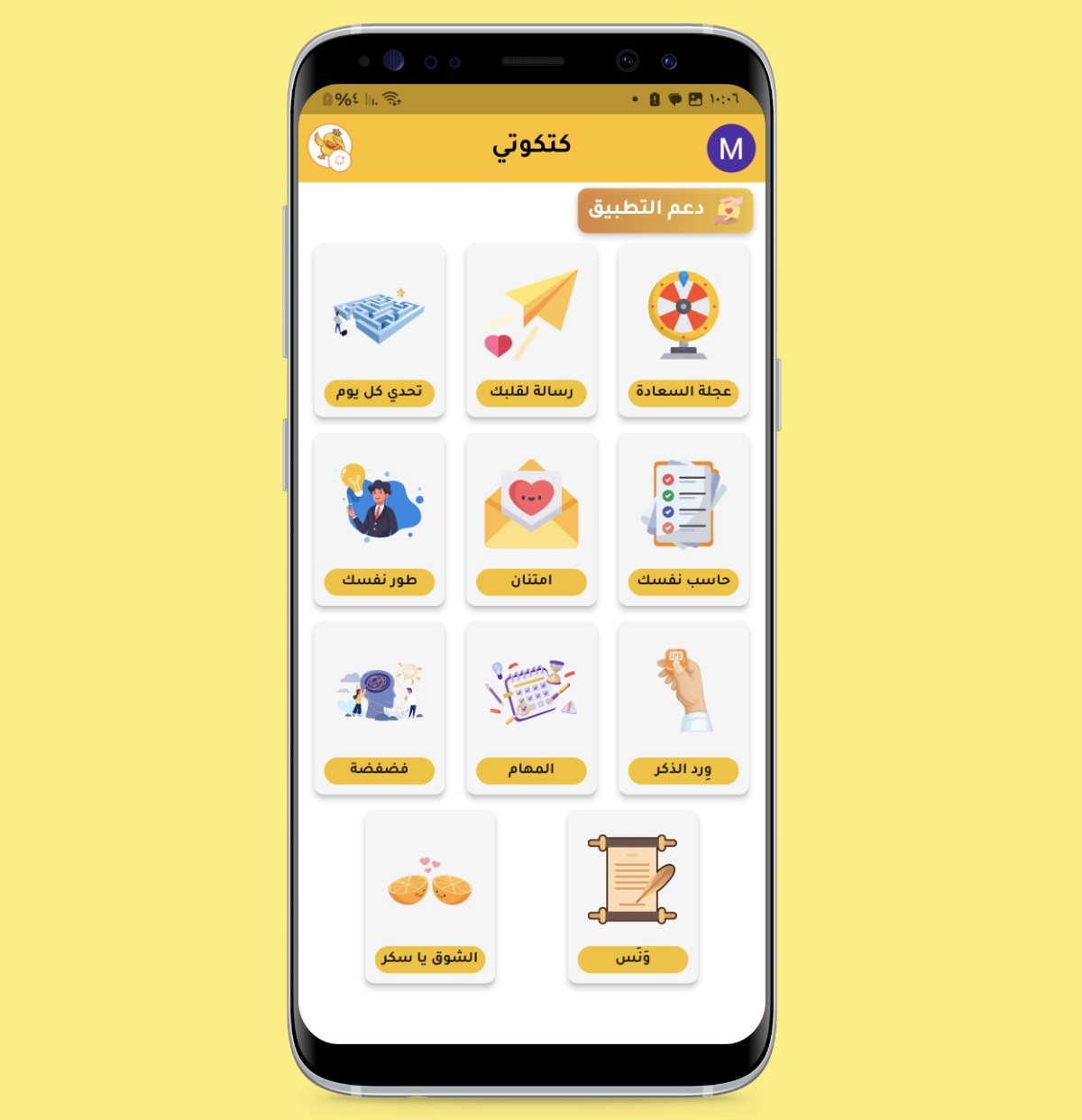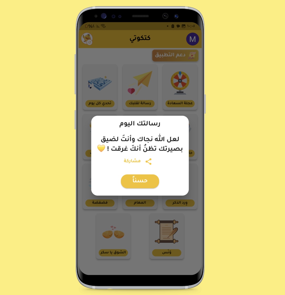 Katkouti 🐥 ist mehr als nur eine Motivations-App. Sie bietet dir einen sicheren Ort, psychologische Unterstützung und Ermutigung – voller einfacher Dinge, die deine Stimmung und deinen Tag nachhaltig beeinflussen. Dein täglicher Begleiter gibt dir positive Energie und fördert deine Selbstverbesserung. Ob motivierende Nachrichten, tägliche Herausforderungen oder tägliche Erinnerungen aus dem Heiligen Koran – Katkouti hilft dir, voller Energie und Enthusiasmus in den Tag zu starten. Zahlreiche Funktionen unterstützen dich jederzeit. 📌 Die Katkouti-App enthält: ▪ Unterstützende, motivierende Nachrichten und Ratschläge, die dich täglich begleiten und von Katkout über den Tag verteilt werden. ▪ Erinnerung: Katkouti erinnert dich täglich an eine bestimmte Erinnerung. Die Gebetsperlen zum Zählen helfen dir dabei, zusätzlich zu verschiedenen Erinnerungen. Selbstverantwortung: Dieser Bereich ermutigt dich, deine Gebete zu befolgen, den Koran zu rezitieren und tägliche Bittgebete zu sprechen. Es zeichnet auch Ihre täglichen Erfolge in Anbetung und Gehorsam auf. Tägliche Herausforderungen: Motivierende tägliche Herausforderungen, die Ihnen helfen, sich weiterzuentwickeln und Ihre Produktivität zu steigern. Sie werden ihre Wirkung und die Fortschritte spüren, die Sie nach Abschluss dieser Herausforderungen erleben. Dankbarkeitsbereich: In diesem Bereich erfahren Sie mehr über die positiven Dinge in Ihrem Leben und Tag. Er wird Sie ermutigen und Ihre Dankbarkeitsgewohnheiten stärken, sodass Dankbarkeit zu einer täglichen Gewohnheit wird. Aufgaben: Nach jeder Aufgabe, die Sie tagsüber erledigen, schreit ein Küken. Bereich Selbstentwicklung: Erlernen Sie neue Fähigkeiten, die Ihr Bewusstsein durch vielfältige Inhalte zu persönlicher Entwicklung, Bildung sowie religiösen und praktischen Informationen erweitern. Dies wird Ihren Alltag erheblich bereichern. Koran und Rezitation: Lesen und Hören von Koranversen zusammen mit einer täglichen Erinnerung an Bittgebete, um Gott immer nahe zu sein. ▪ Ein Glas voller Glück und eine Botschaft für Ihr Herz: Positive Botschaften, die Ihre Stimmung zu jeder Tageszeit verbessern und Ihnen einen energiegeladenen Start ermöglichen. ▪ Informationen für unterwegs: Kurze, praktische und gesunde Tipps, die dir helfen und deinen Tag bereichern. ▪ Das Glücksrad: Erhalte eine Botschaft der Freude und des Optimismus, die deine Stimmung hebt. ▪ Verwirrend: Ein sicherer Ort, um deine Gefühle jederzeit auszudrücken. Du findest ein offenes Ohr, das dir schriftlich oder mündlich beibringt, was immer du gerade durchmachst, und Katkoot übersetzt es in Worte, wenn du zu faul zum Schreiben bist. ▪ Der Bereich „Elegantes Flirten“: Wenn du süße Worte liebst, findest du hier elegante, kokette Liebessprüche für Menschen mit kultiviertem Geschmack, die deine Stimmung heben. Du kannst sie mit deinen Lieben teilen oder für dich behalten. ▪ Feiere deinen Geburtstag: Katkoot wird deinen besonderen Tag nie vergessen, auch wenn alle anderen es tun. 📌 Funktionen der Katkuti-App: • 100 % kostenlos • Einfaches und benutzerfreundliches Design • Psychologische Unterstützung und tägliche Motivation • Vielfältige Inhalte aus Unterhaltung, Bildung und Religion • Für alle Altersgruppen geeignet • Funktioniert teilweise offline • Veränderung, Unterstützung und Entwicklung … All das und mehr finden Sie in Katkuti Katkuti = Positive Energie + Unterstützung + Selbstentwicklung Laden Sie „Katkuti“ jetzt bei Google Play herunter und beginnen Sie Ihre Reise zu einem positiveren Leben. Nutzen Sie jeden Tag neue Möglichkeiten für positive Veränderungen. 📌 Hinweis: Die App wird ständig weiterentwickelt und um neue Updates und Funktionen erweitert. Wir freuen uns über Ihre Meinung, Vorschläge und Ihr Feedback. Möge Allah Sie belohnen.