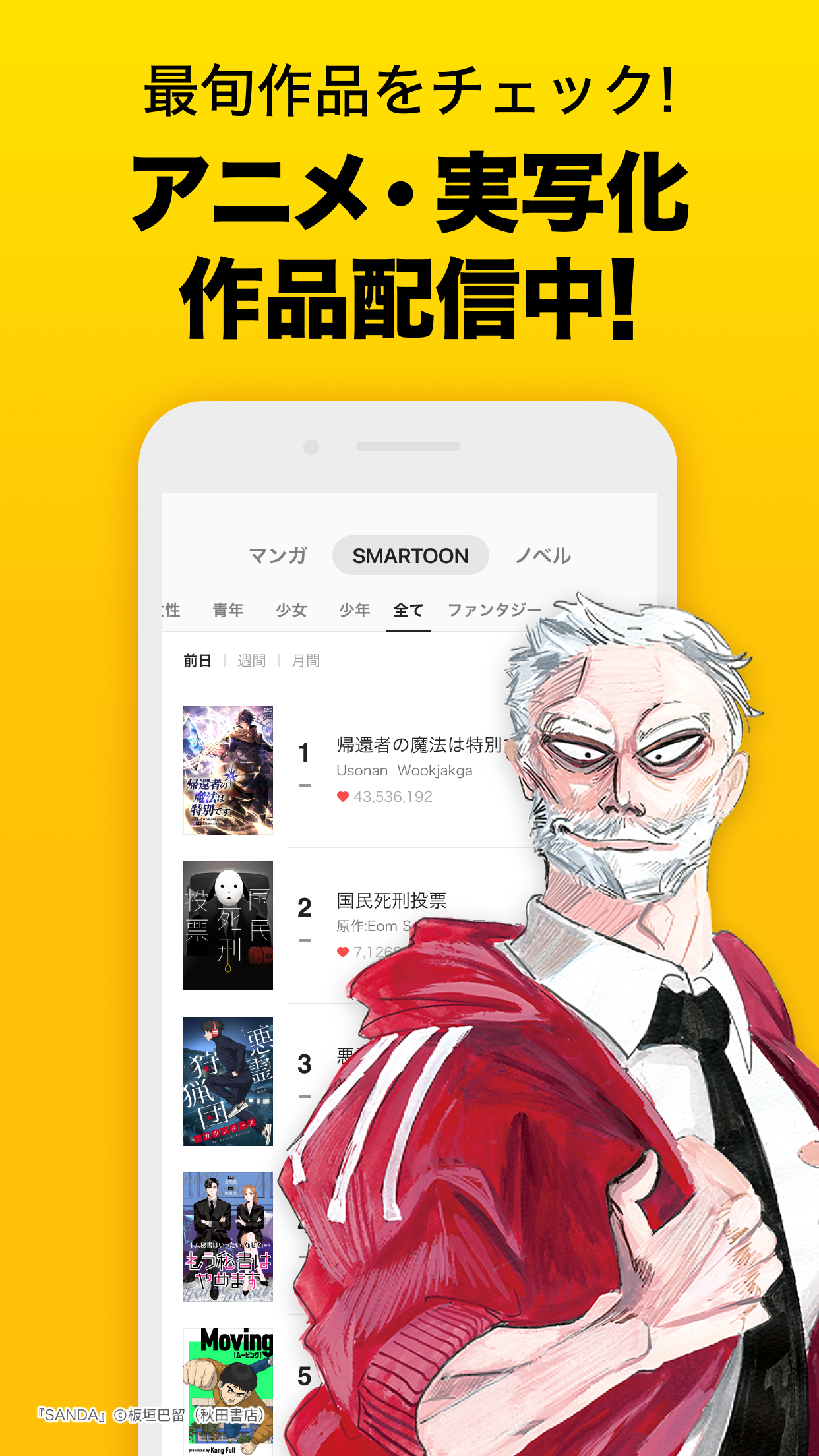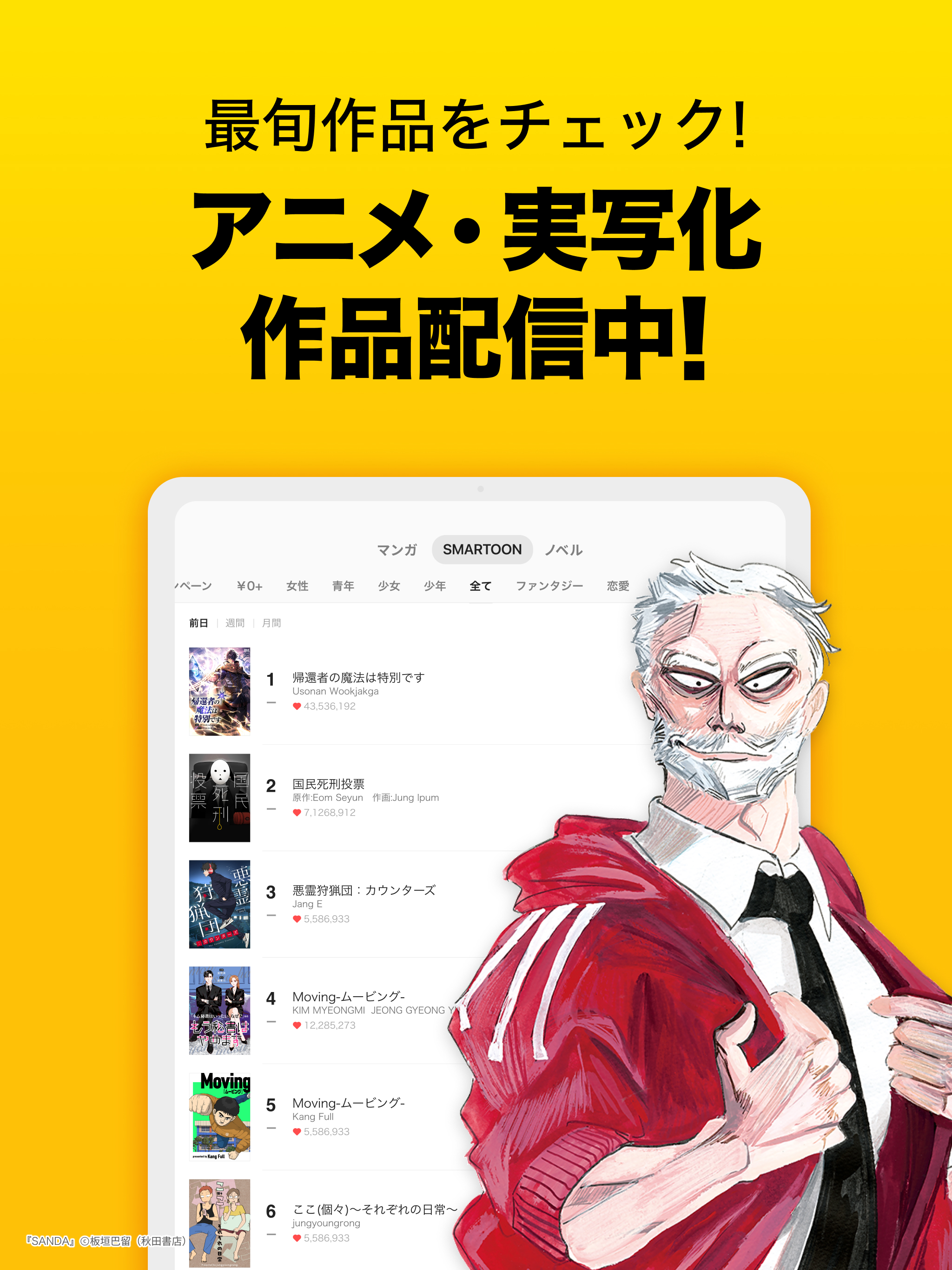 SMARTOON ist eine neue Art von Manga-Inhalten, die du dank vertikalem Scrollen in Vollfarbe flüssig lesen kannst. Dank der für Smartphones optimierten Inhalte kannst du jederzeit und überall fesselnde Inhalte genießen.