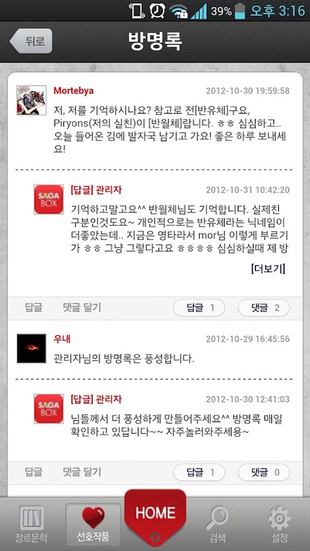 - 방명록 답글 작성 기능 (답글 등록 시 상대 방명록에 전송)