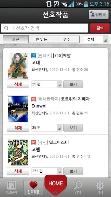 2. 선호작중 연재작품이 없을경우 네트워크 오류 수정