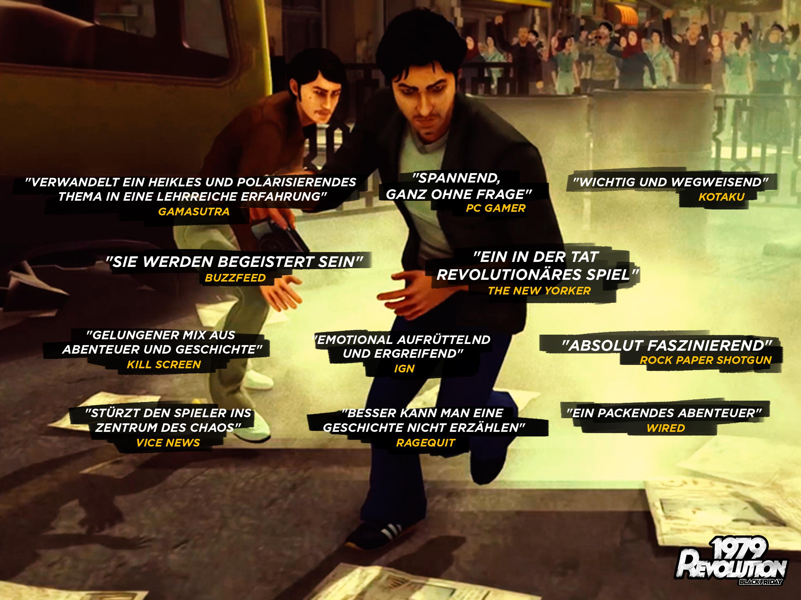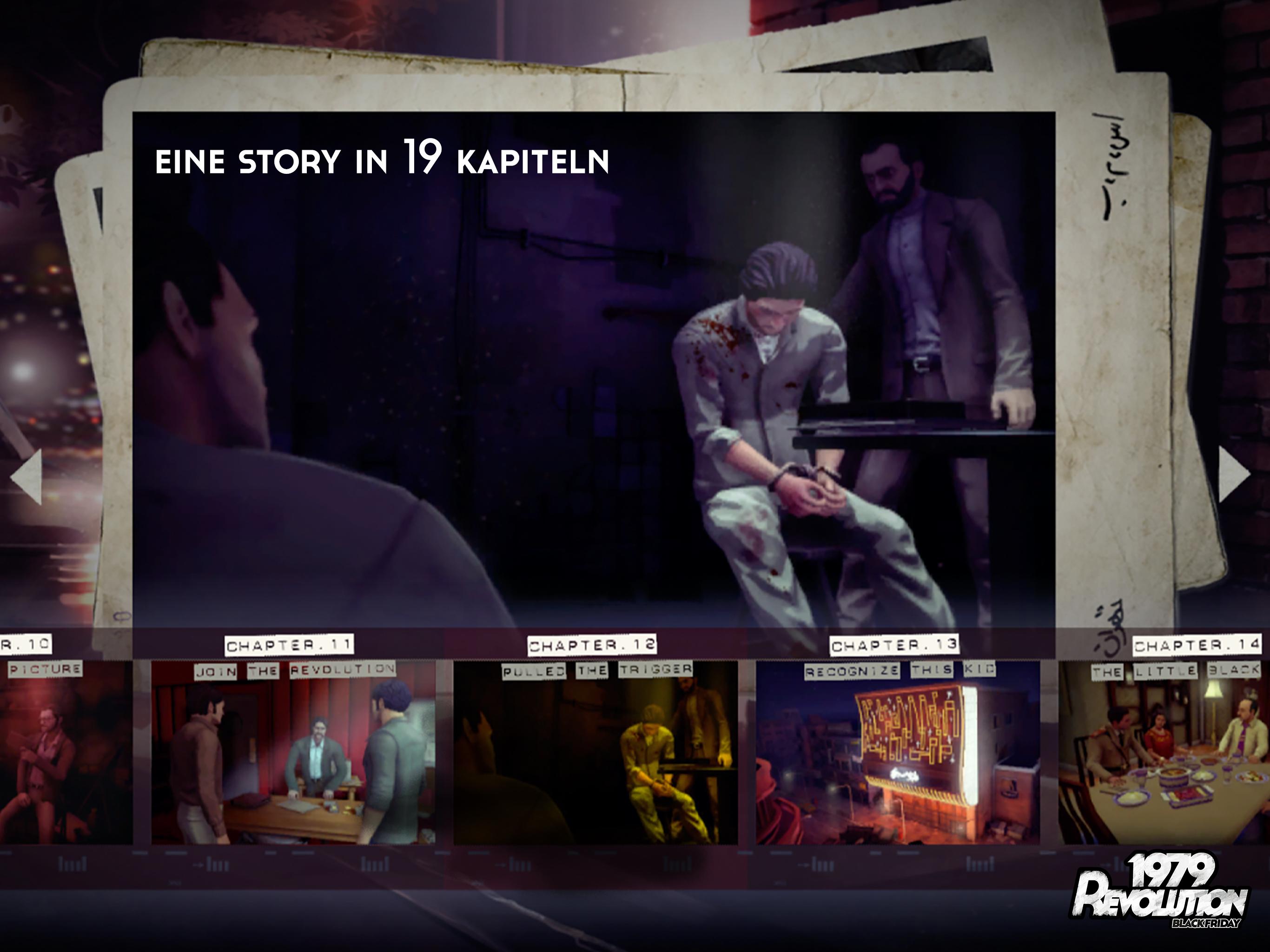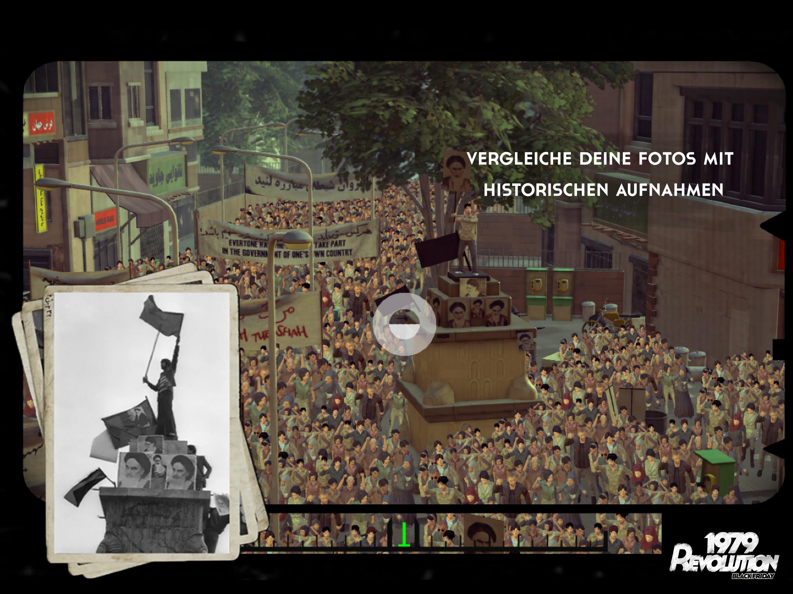 Schlüpfe in die Rolle von Reza, der als Fotojournalist die Aufstände gegen den iranischen König miterlebt. "Eine großartige Geschichte mit großartigen Charakteren" – IGN "Ein packendes Abenteuer" – WIRED "Das Spiel macht die komplexe Dynamik einer Revolution erfahrbar" – VICE NEWS **Winner of Grand Jury Prize at IndieCade ‘16, Official Selection of The PAX 10, Game of the Year Finalist by TIGA, BEST OF E3 Nominee by IGN, People’s Choice Finalist by FoST, Medal Winner at Serious Play Awards.** Tauche ein in die Wirklichkeit einer Revolution. Finde deinen Weg durch die Wirrungen des Umsturzes, mit nichts als deiner Kamera und deinem Gewissen gewappnet. 1979 Revolution ist ein filmisches Abenteuer, in dem die Auswirkungen deiner Entscheidungen über das Schicksal deiner Umgebung bestimmen. Basierend auf realen Geschichten. Eigenschaften: FILMISCH – Lebendige Kulisse ENTSCHEIDUNGEN – Bestimme über dein eigenes und über das Schicksal deiner Mitstreiter. ERFORSCHUNG – Schalte mehr als achtzig einzigartige Geschichten über den Iran und die Revolution frei: Sitten und Gebräuche, politische und historische Fakten, Privatvideos, Graffitis, Fotos und mehr. FOTOGRAFIEREN – Vergleiche deine Fotos mit den original Archivbildern. ENTDECKUNG – Entdecke den Iran, wie er noch nie in einem Videospiel dargestellt wurde. WAHRE GESCHICHTEN – Basiert auf den Aussagen von Freiheitskämpfern, Zeugen und politischen Gefangenen, deren Wirkung bis in 21. Jahrhundert spürbar sein sollte. --MINIMUM SPECS-- Android 5.0 "Lollipop" Open GL ES 3.0 Support GPU: Mali-T760MP8 CPU: Quad-core Memory: 3 GB - - - - Examples of supported devices include: Galaxy S5 and up