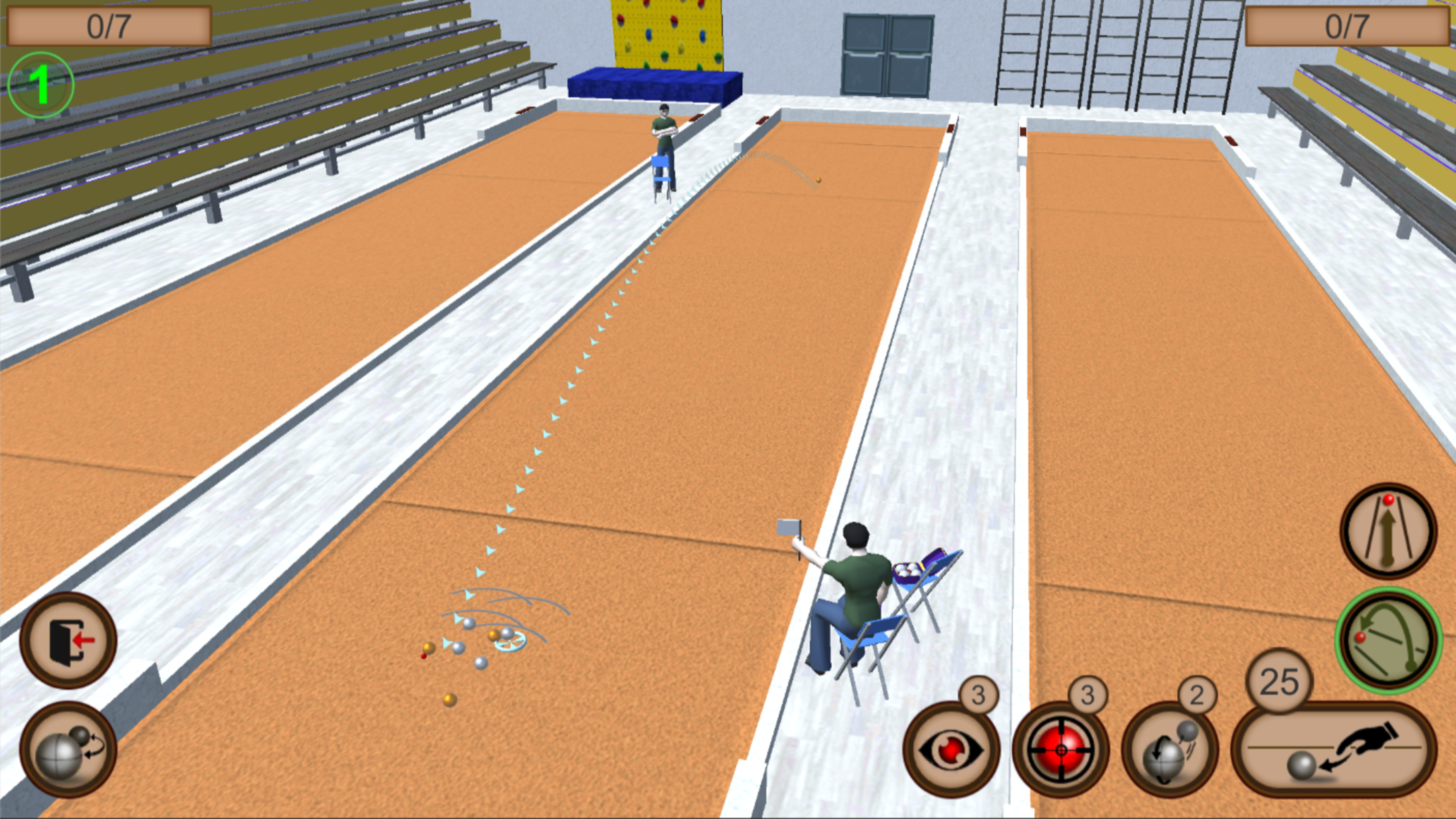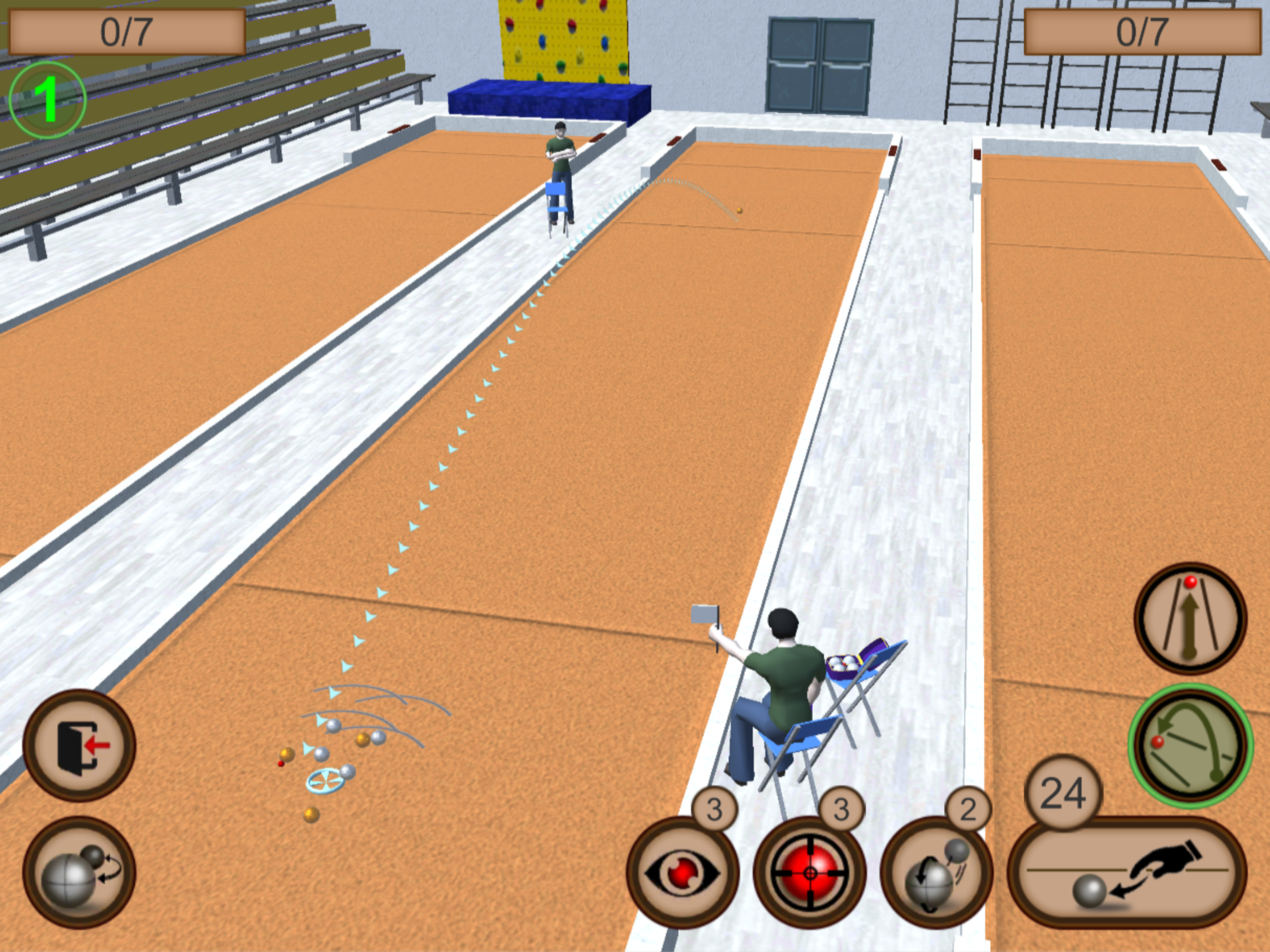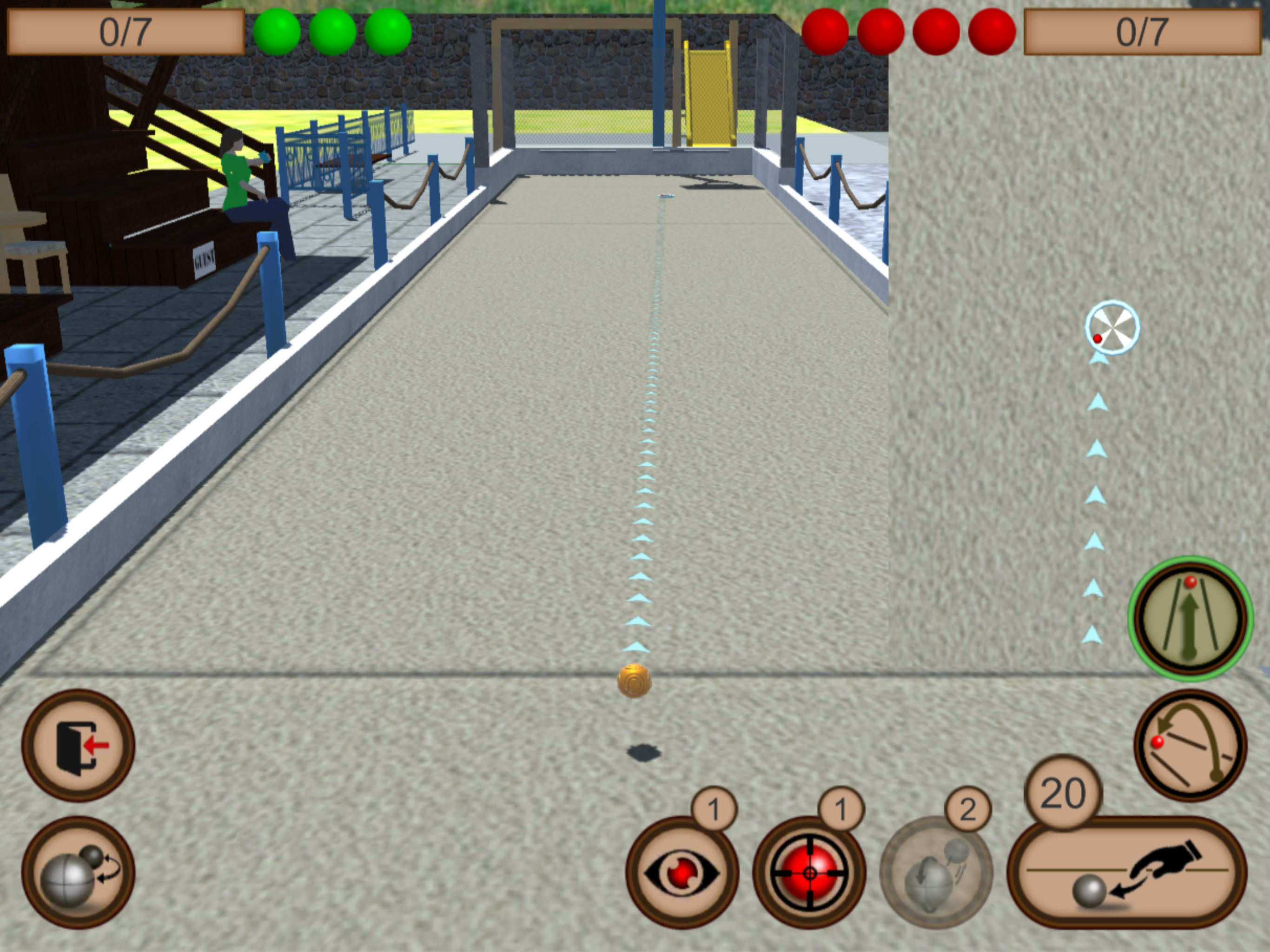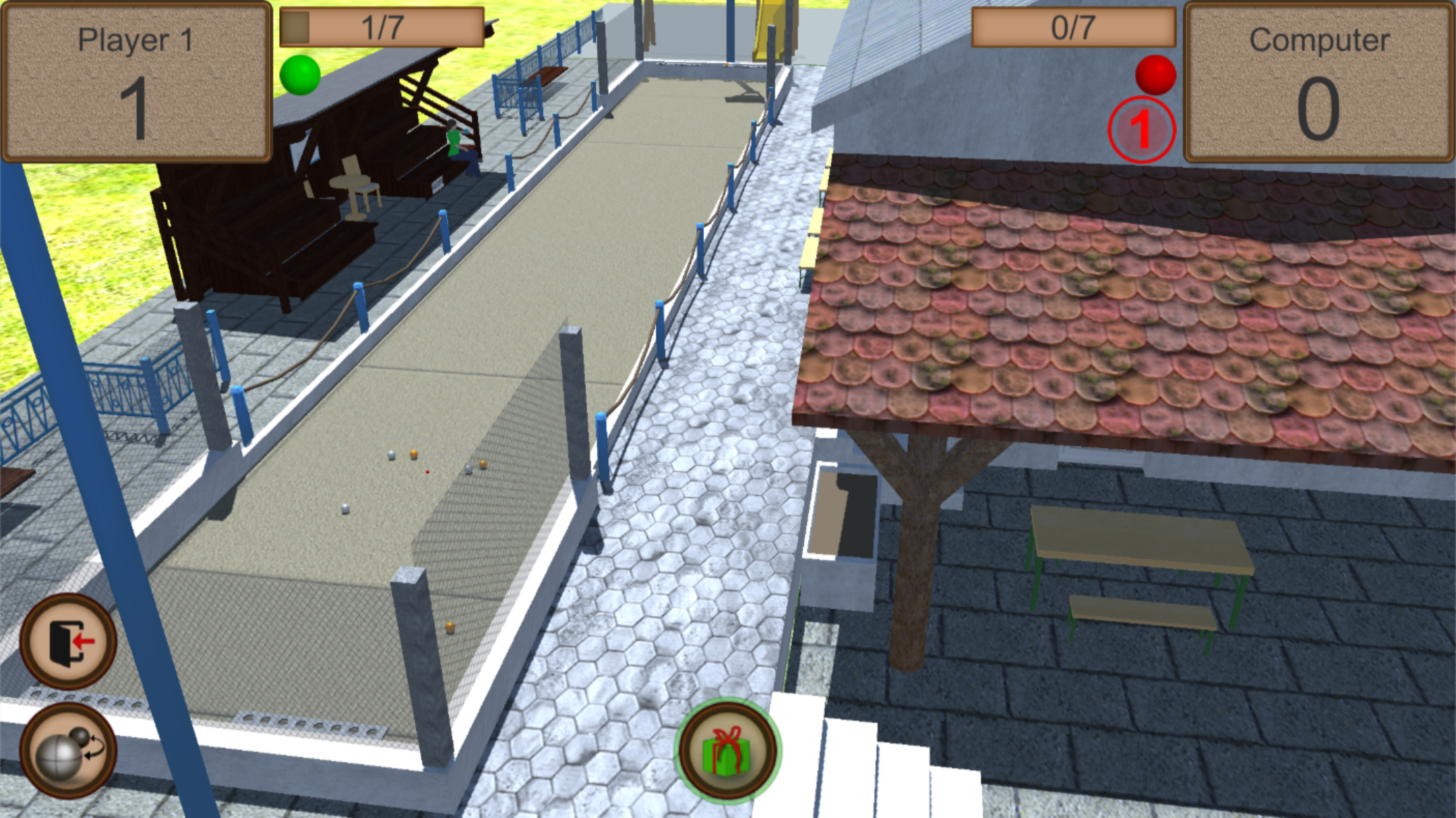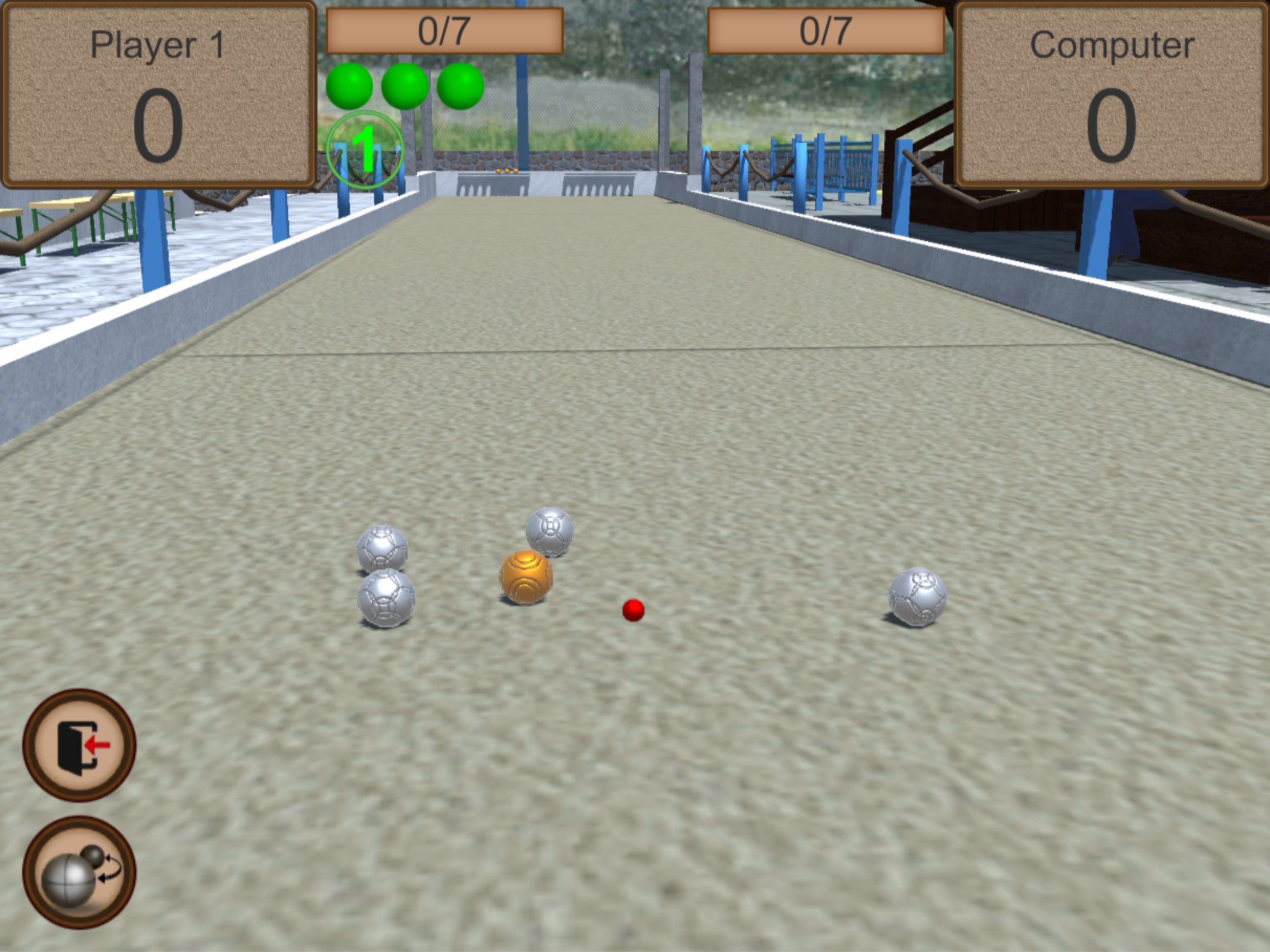 3D Bocce Ball ist ein Simulator des traditionellen Ballwurfspiels, der bringt Ihnen Spaß beim Testen (und Verbessern) ihrer Schnellreaktionsfähigkeit. Ihr Ziel ist, ihren Gegner zu besiegen, indem Sie die Kugeln so nah wie möglich an den Pallino (Jack or Boccino) werfen.