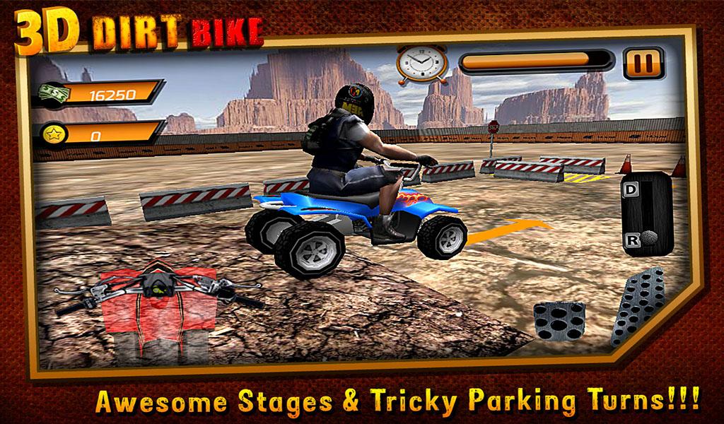 Hurry up! Download the latest trendy mania Dirt Bike Parking , its Trendy like a fashion these days, Enjoy and play with full of excitement. Show how much expert you are within quad Dirt Bike. Enjoy the simulation environment with fenced barrier around and avoid the boundary obstacles to complete the level and jump to the new and more interesting level of with quad parking bike.