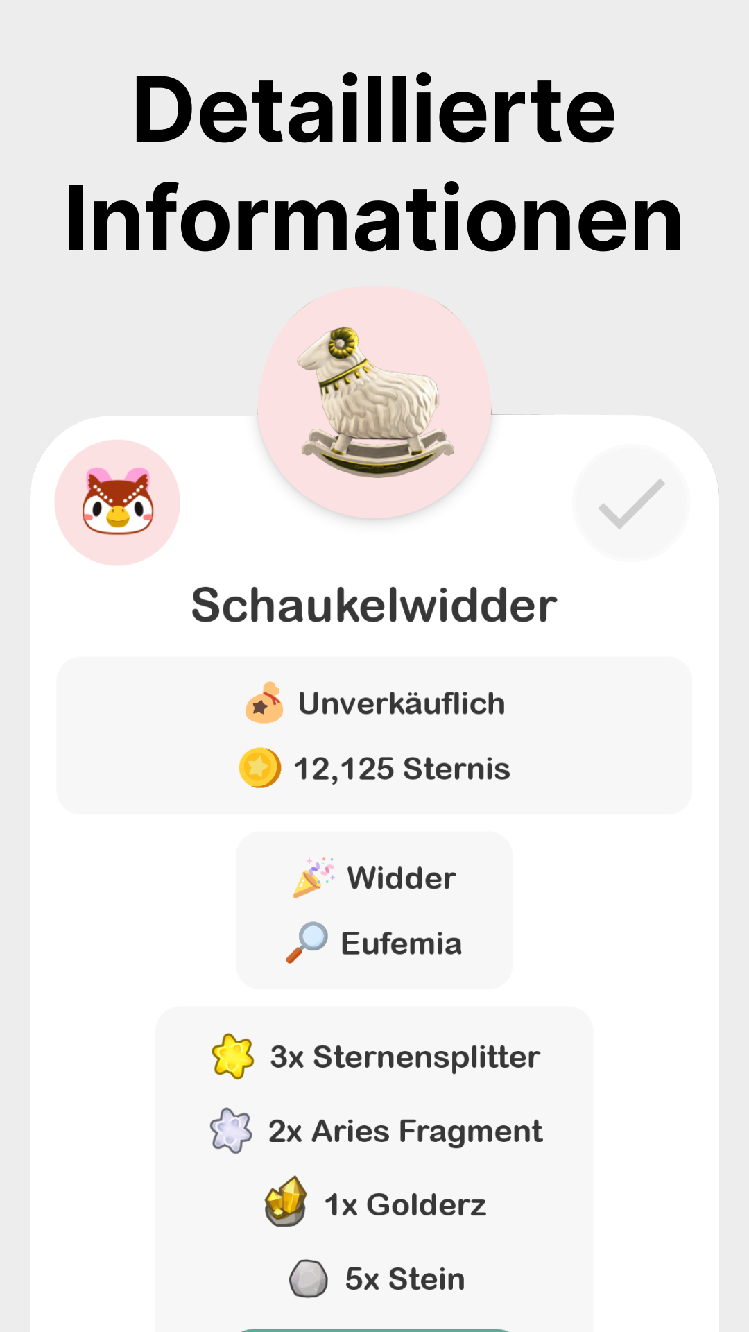 ACNH Pocket Guide (Paketname: com.acnh.pocket_guide) wird von Dapper App Developer entwickelt und die neueste Version von ACNH Pocket Guide 21.2.7 wurde am 28. Januar 2026 aktualisiert. ACNH Pocket Guide liegt in der Kategorie von Tools. Sie können alle Apps von dem Entwickler der ACNH Pocket Guide durchsuchen und 198 alternative Apps zu ACNH Pocket Guide auf Android finden. Derzeit ist diese APP kostenlos. Diese App kann auf Android 7.0+ auf APKFab oder Google Play heruntergeladen werden. Alle APK/XAPK Dateien auf APKFab.com sind original und 100% sicher, schnell herunterzuladen.