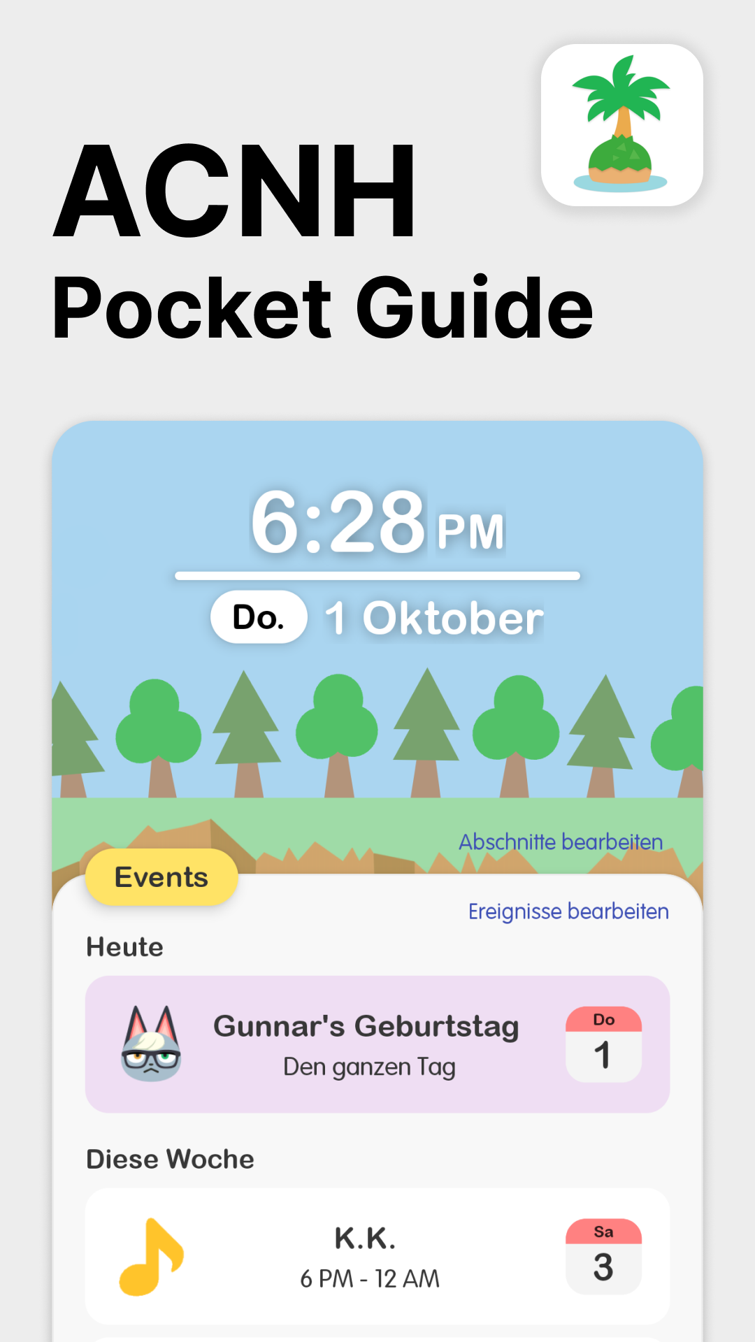 Mit einem modernen und gut durchdachten Design ist ACNH Pocket Guide der beste Leitfaden, um Deine Sammlung während des Spielverlaufs zu verfolgen. Schau dir Informationen zu Sammlerstücken und Lebewesen sowie bevorstehende In-Game-Events an. Mit den neuesten Spielinformationen ist dies die einzige Anlaufstelle für all deine ACNH-Bedürfnisse!