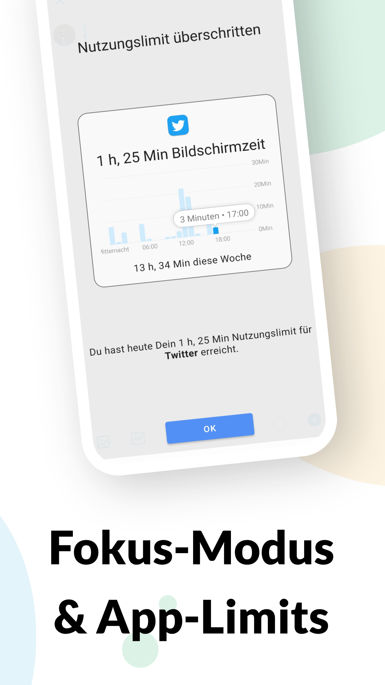 Nutzungsbeschränkungen für Apps: Blockieren Sie vorübergehend jede App, die Sie zu stark nutzen, und bleiben Sie konzentriert.