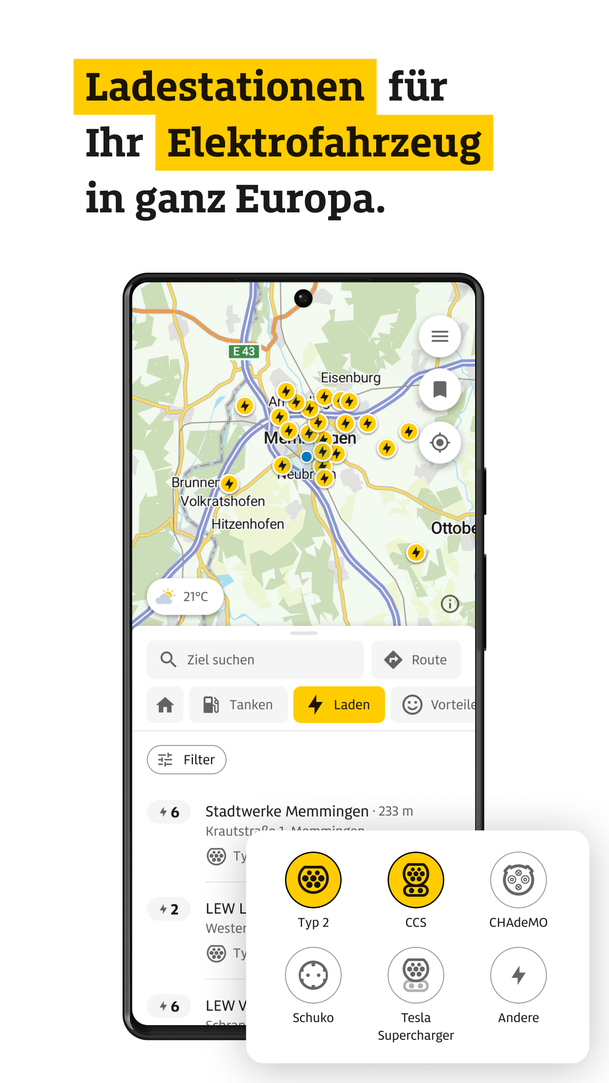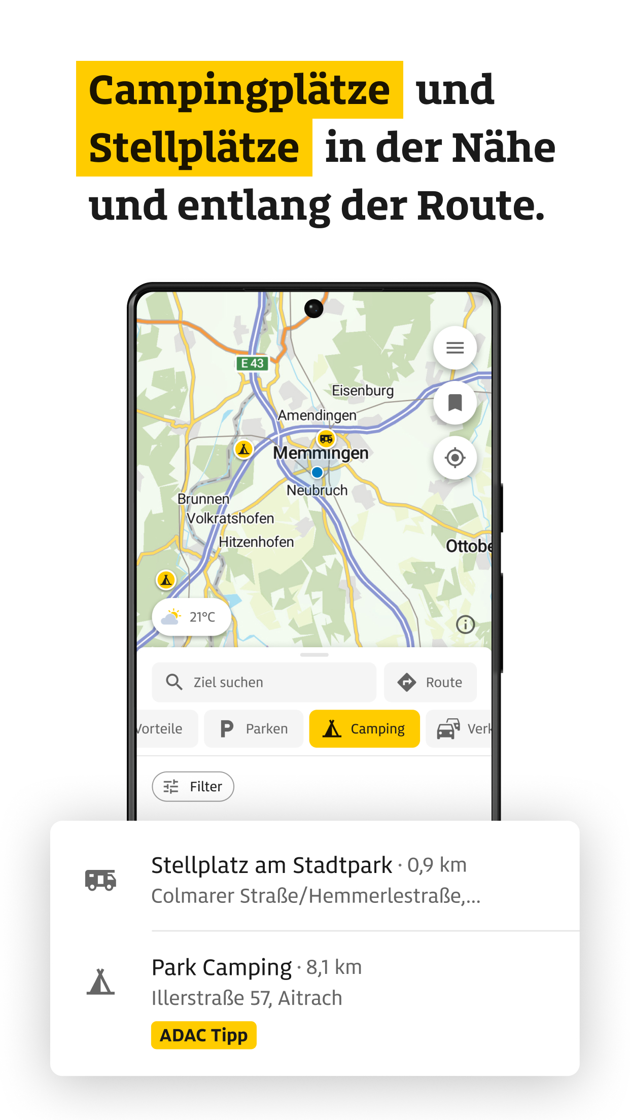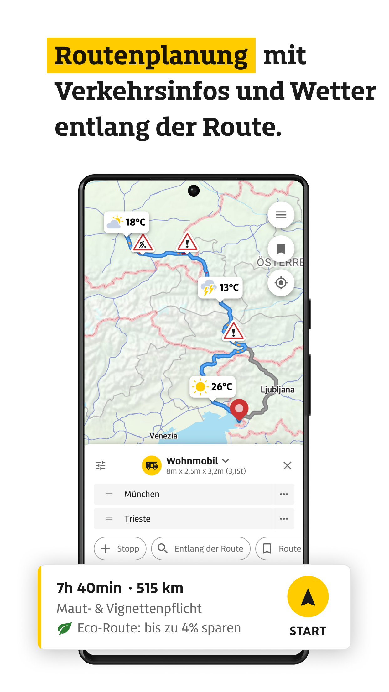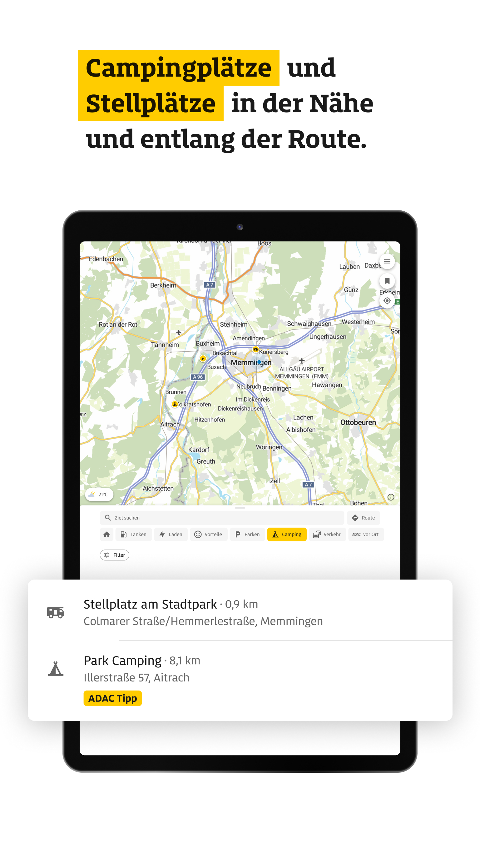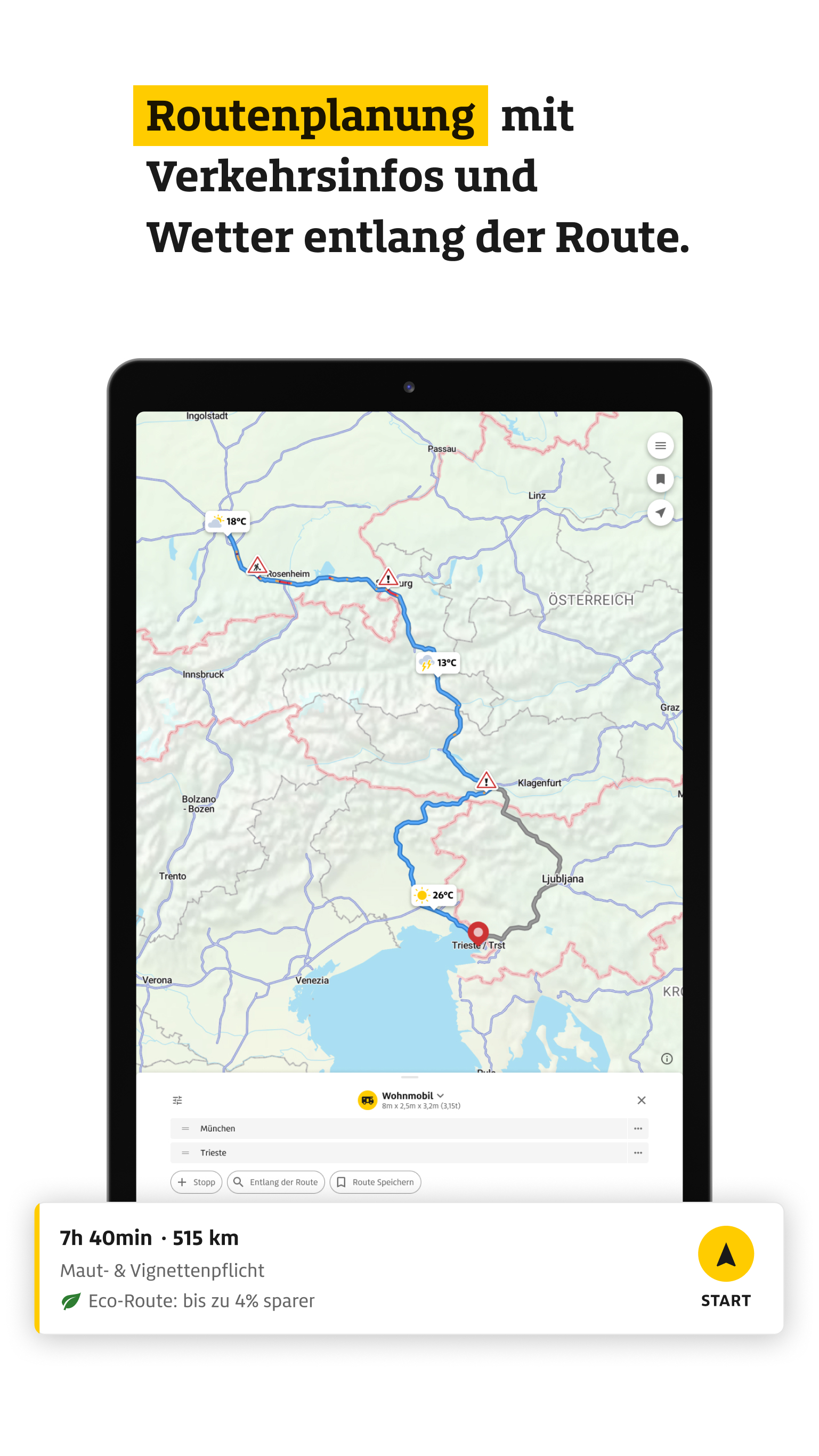 -- ADAC DRIVE – TANKEN, LADEN, WEITERFAHREN -- ADAC Drive vereint alles für Ihre Mobilität im Alltag und auf Reisen: aktuelle Spritpreise mit Historie, europaweite Ladepunkte und intelligente Routen für Auto, Wohnmobil, Motorrad oder Fahrrad. Turn-by-Turn-Navigation mit Android Auto, Eco-Routen, Parkmöglichkeiten, Wetter entlang der Route sowie auf der Karte und Vignetten- und Mautinfos sorgen für sicheres und sparsames Reisen. Mit der ADAC Vorteilswelt profitieren Sie zudem als ADAC Mitglied von attraktiven Vorteilen – zuhause und unterwegs. Jetzt kostenlos registrieren – auch ohne ADAC-Mitgliedschaft. -- Spritpreise -- AKTUELLE PREISE & FAVORITEN: Tagesaktuelle Preise für Benzin, Diesel, CNG und LPG. Bevorzugte Tankstellen speichern und nach Betreiber oder ADAC-Vorteilsprogramm filtern. SPRITPREIS-HISTORIE & TANKEN-PROGNOSE: Preisverlauf der letzten 24 h und 7 Tage – mit Empfehlungen zum besten Tankzeitpunkt. INTERNATIONALE KRAFTSTOFFPREISE: Preise aus Österreich, Italien, Frankreich, Spanien, Slowenien und Großbritannien. DIESEL HVO100: Preise für die alternative Dieselvariante in Deutschland und Österreich. -- Elektromobilität -- LADESTATIONEN EUROPAWEIT: Über 120.000 Ladesäulen mit mehr als 360.000 Ladepunkten. FILTER & FAVORITEN: Nach Leistung, Steckertyp, Bezahlart oder Anbieter filtern und Favoriten speichern. --- Routenplanung -- FAHRZEUGWAHL & WOHNMOBILROUTING: Individuelle Planung für Auto, Gespann, Wohnmobil, Motorrad, Fahrrad oder zu Fuß. Inkl. Wohnmobilrouting nach Maßen und Gewicht (für ADAC-Mitglieder). ENERGIEEFFIZIENTE ROUTEN: Mit der Eco-Route Kraftstoff oder Strom sparen. ZIELE ENTLANG DER ROUTE: Tankstellen, Ladepunkte und Campingplätze auch entlang der Route finden. MAUT & VIGNETTEN: Alle wichtigen Infos pro Land – zu Maut, Vignetten, Tunneln und Fähren. Preise je Abschnitt einsehen, direkt im ADAC-Mautportal kaufen oder gezielt Maut- und Vignettenstrecken vermeiden. ROUTEN- & KARTEN-WETTER: Wettervorhersagen entlang Ihrer geplanten Route – abgestimmt auf den Zeitpunkt Ihrer Durchfahrt. NEU: Aktuelles Wetter inklusive Warnungen für jeden Ort weltweit, direkt auf der Karte mit Detailinfos per Antippen. -- Navigation & Favoriten -- TURN-BY-TURN-NAVIGATION: Klare, sprachgeführte Navigation mit präziser Darstellung an Kreuzungen. VERKEHR IN ECHTZEIT: Staus, Baustellen und Behinderungen farblich hervorgehoben. ANDROID AUTO: Alle Funktionen direkt im Fahrzeug nutzen: Tanken, Laden, Navigieren. FAVORITEN & SCHNELLZUGRIFFE: Lieblingsorte und Routen speichern – geräteübergreifend mit ADAC-Login abrufbar. ROUTEN & KOORDINATEN TEILEN: Beliebige Orte und geplante Routen einfach teilen – mit Freunden oder in anderen Apps. -- ADAC Vorteilswelt-- VORTEILE: Ab sofort Vorteile aus der ADAC Vorteilswelt entdecken – exklusiv für ADAC Mitglieder. ZAHLREICHE PARTNER: Attraktive Vorteile bei starken Partnern rund ums Auto, Reisen, Freizeit und vieles mehr. -- Weitere Funktionen -- PARKEN: Parkplätze und Parkhäuser europaweit finden und Lieblingsplätze speichern – im Alltag und auf Reisen. CAMPING & STELLPLÄTZE: Über 25.000 Plätze mit Filter- und Buchungsfunktion via PiNCAMP. ADAC VOR ORT: Standorte, Reisebüros und Fahrsicherheitszentren mit Kontaktinfos. DIGITALE ADAC CLUBKARTE: Mitgliedervorteile jederzeit digital nutzen. OPTIMIERT FÜR TABLETS: Landscape-Ansicht für bessere Übersicht auf großen Displays. NOTFALLPASS: Wichtige persönliche Daten (z. B. Allergien, Notfallkontakte, Blutgruppe) sicher speichern – für schnelle Hilfe im Notfall. -- Einige Funktionen erfordern kostenlose Anmeldung oder ADAC-Mitgliedschaft. --