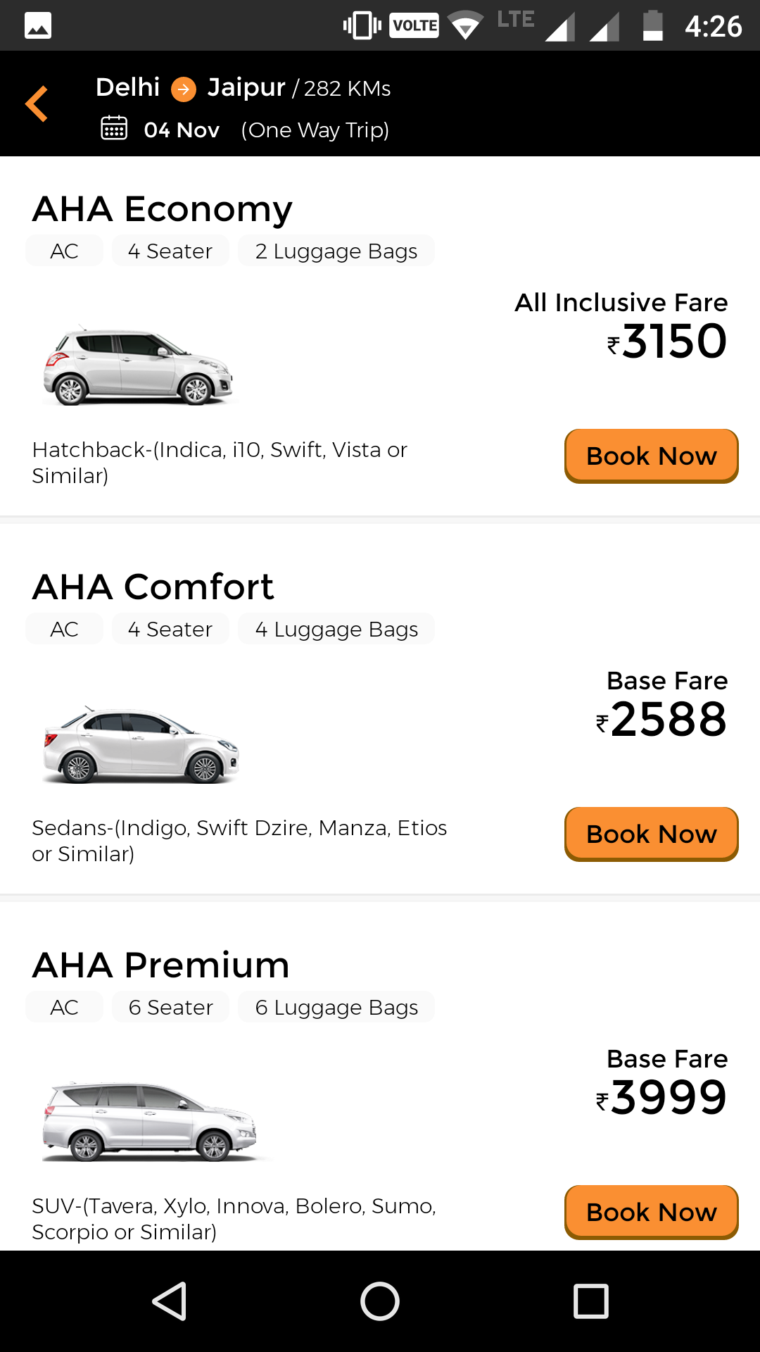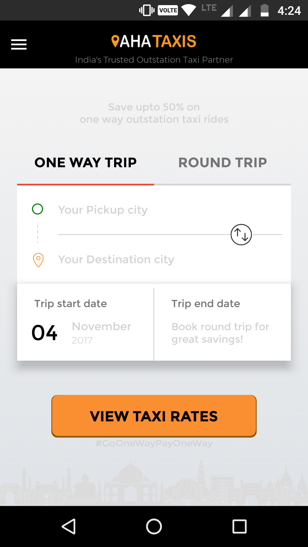 Egal, ob Sie eine Einzelfahrt oder Hin- und Rückfahrt machen wollen, gibt es ein AHA Taxi für alle Ihre Außenstation Reisebedarf. AHA Taxi ist in mehr als 4000 Städten in ganz Indien-Download AHA Taxi App und Ihre nächste Reise planen mit AHA Taxis zur Verfügung.