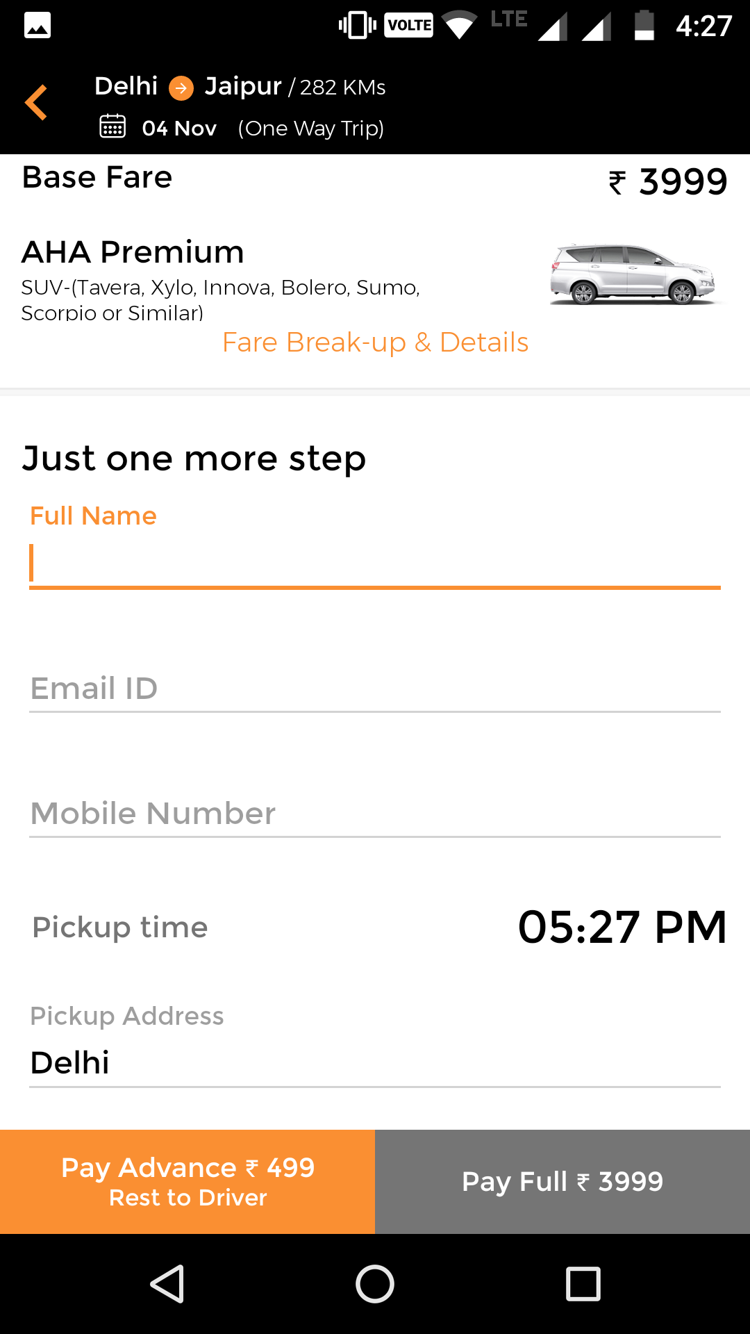 4. Bitte geben Sie uns Details wie Namen, E-Mail-ID, Handy-Nr., Abholzeit, Abholadresse und Adresse fallen.