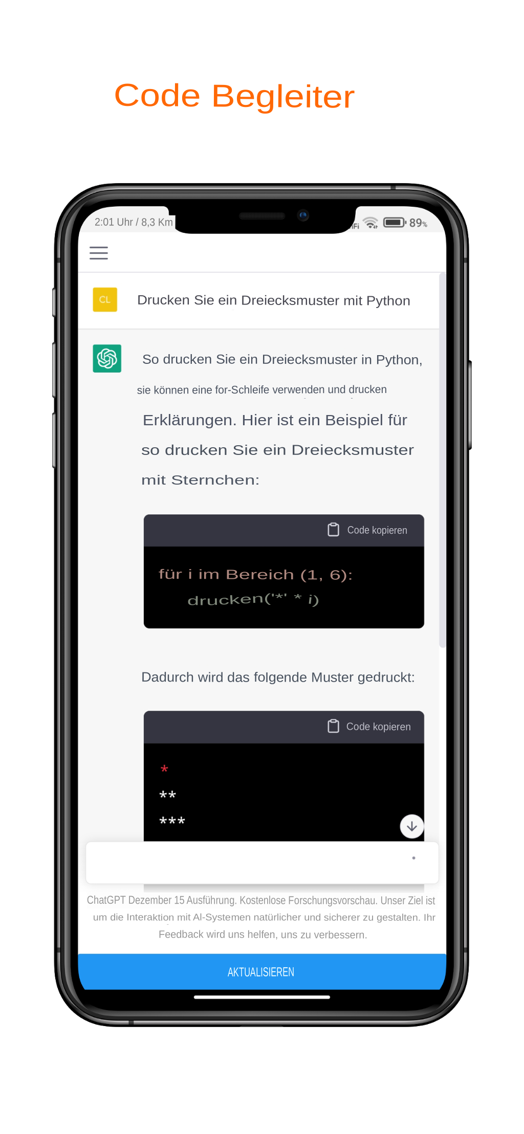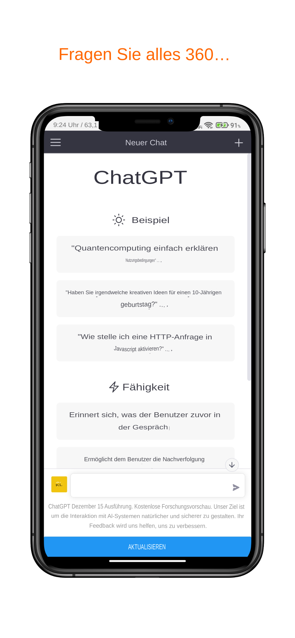 Wir stellen unseren AI 360 Open Chat gpt Bot vor, Ihren persönlichen KI-Helfer und Begleiter. Dieser KI-Assistent wurde mit der besten KI-Technologie auf dem Markt entwickelt und kann eine Vielzahl von Fragen beantworten und mehrere Aufgaben erledigen. Egal, ob Sie ein Student sind, der einen kreativen Aufsatz schreiben möchte, ein professioneller Texter oder einfach nur jemand, der effektiv kommunizieren möchte, diese App ist die perfekte Lösung für Sie! Mit der leistungsstärksten KI auf dem Markt macht es dieser Open-Chat-gpt-KI-Chat-Bot einfach, sich in jedem Stil und Ton auszudrücken und gleichzeitig sicherzustellen, dass Ihre Grammatik, Zeichensetzung und Rechtschreibung korrekt sind. DER PERFEKTE CHATPARTNER: Die fortschrittlichen Chat-Fähigkeiten dieses AI 360-Chat-GPT-Bots machen ihn zu einem anpassungsfähigen und unterhaltsamen Gesprächspartner. Egal, ob Sie Spaß haben oder einfach nur reden möchten, der AI 360 Chat gpt Bot ist verfügbar, um Ihre Bedürfnisse zu erfüllen. PERSÖNLICHER KI-WRITER: Unser KI-Assistent kann auch als Ihr persönlicher KI-Autor fungieren, der Sie bei der Ideenfindung und der Erstellung von Originalinhalten unterstützt. SOZIALER ANTWORTGENERATOR: AI 360 Chat gpt Bot macht es einfach, Antworten auf E-Mails, Tweets und andere Social-Media-Nachrichten in jedem Stil und Ton zu verfassen, während sichergestellt wird, dass Ihre Grammatik, Zeichensetzung und Rechtschreibung korrekt sind. Lektorat / Grammatikprüfer: Dieser Open Chat gpt AI 360 Bot kann Ihre schriftliche Arbeit analysieren und als umfassende Grammatik-, Rechtschreib- und Zeichensetzungskorrektur fungieren, um sicherzustellen, dass Ihr Schreiben fehlerfrei und von höchster Qualität ist. SPRACHSTIL UND TONMODIFIKATOR: Mit unserem AI 360 Chat gpt Bot können Sie den Sprachstil und Ton jedes Textes ganz einfach ändern, um ihn an Ihre Anforderungen anzupassen. TEXTZUSAMMENFASSUNGS-TOOL: Der AI 360 Chat gpt Bot kann auch als Textzusammenfassungstool dienen, um lange Textteile zur einfacheren Nutzung bequem zusammenzufassen. Wenn Sie nach einem intelligenten KI-Helfer suchen, der Sie bei allem unterstützen kann, probieren Sie unseren KI 360-Chat gpt-Assistenten aus. Es ist die perfekte KI-App für alle, die anregende Gespräche führen oder ihre Schreibfähigkeiten verbessern möchten. Verlassen Sie sich nicht nur auf unser Wort, testen Sie noch heute die AI 360 Chat gpt Bot-App und verbessern Sie Ihr Schreiben mit einem persönlichen KI-Assistenten, der Ihnen immer zur Verfügung steht.