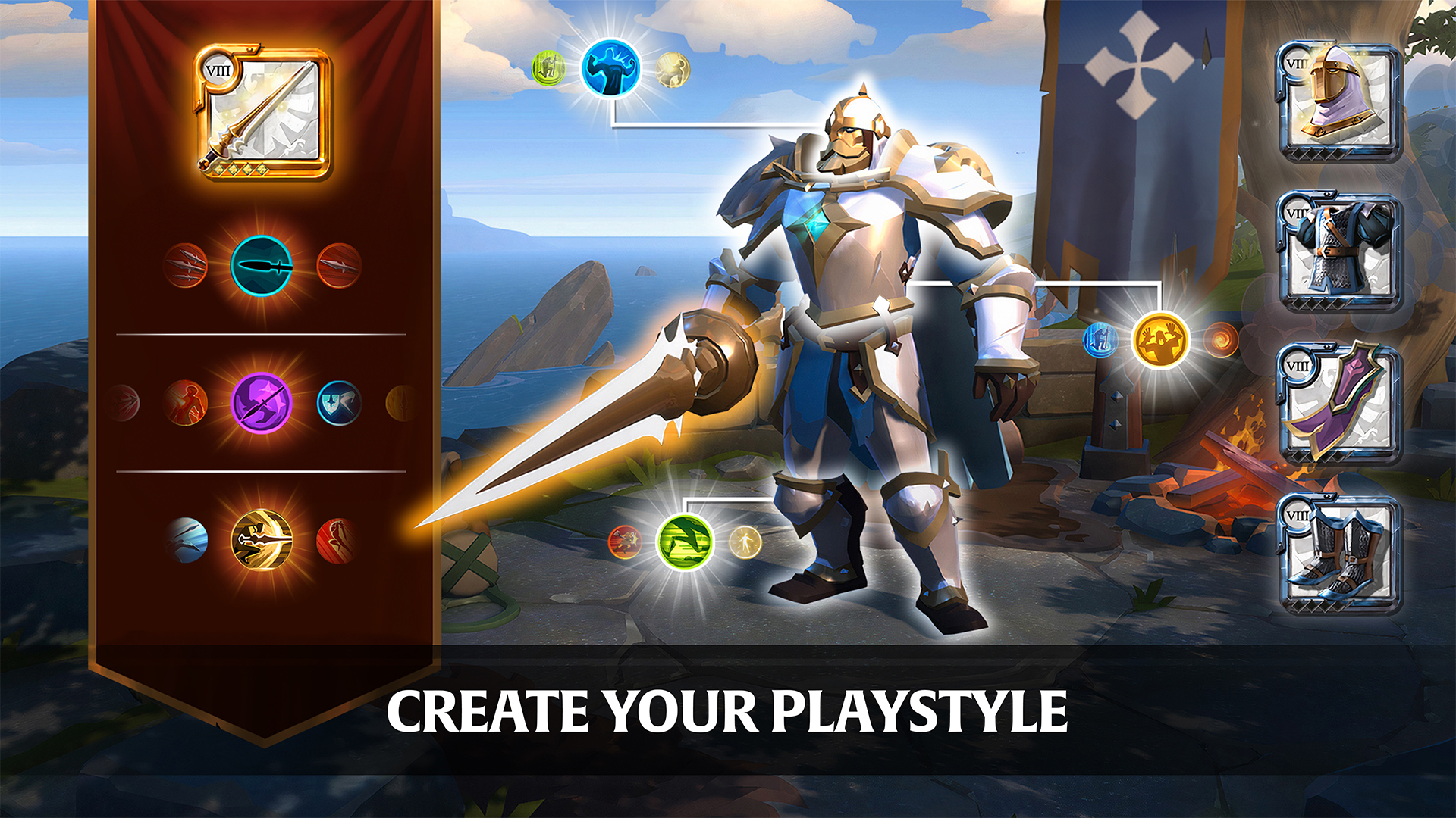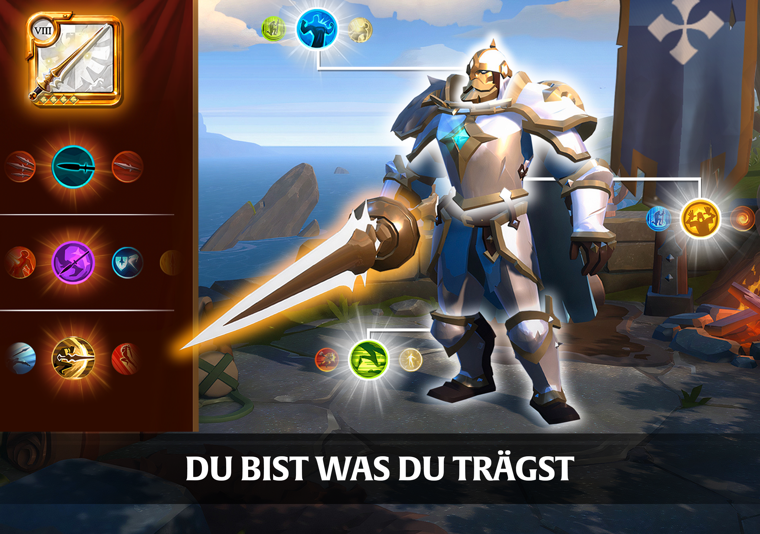 DU BIST WAS DU TRÄGST: Im klassenlosen Kampfsystem von Albion Online bestimmen deine Waffen und Rüstungsteile deine Fertigkeiten, damit wird der Wechsel on Spielstilen einfach, wechsle einfach deine Ausrüstung. Teste jederzeit neue Ausrüstungsmöglichkeiten und wechsle deine Waffen, Rüstungen und Reittiere im Einklang mit der Herausforderung. Verfeinere die Fertigkeiten deines Charakters mit der Herstellung neuer Gegenstände oder einfach durch Anwendung.