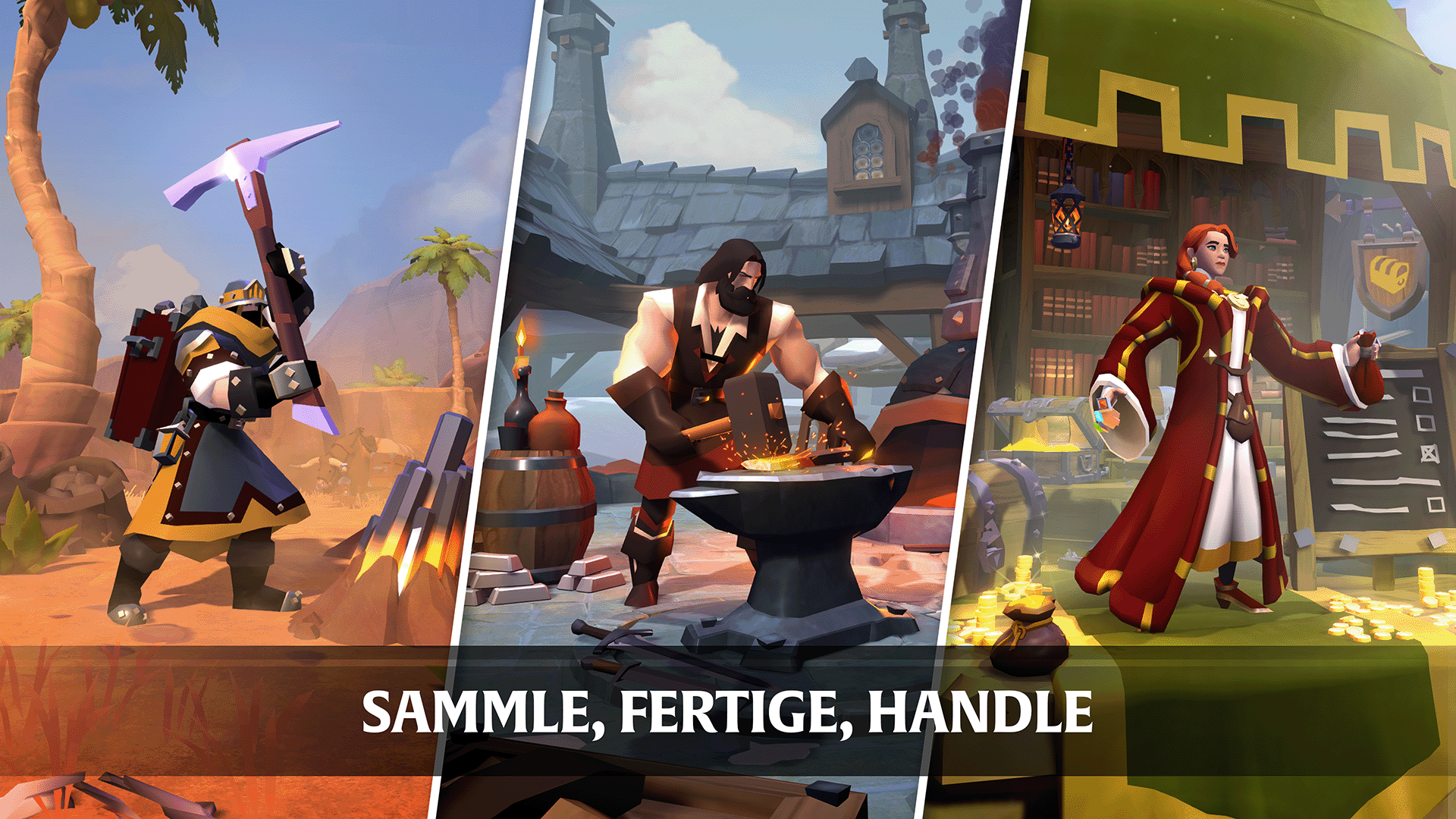 SPIELERBETRIEBENE WIRTSCHAFT: Von den grundlegenden Werkzeugen und Kleidungsstücken bis zur mächtigen Rüstung und den stärksten Waffen, praktisch jeder Gegenstand im Spiel wird von Spielern hergestellt, in von Spielern erbauten Gebäuden mit Ressourcen, die von Spielern gesammelt wurden. Kaufe, verkaufe und handle auf lokalen Handelsplätzen in der ganzen Welt von Albion. Produziere seltene und mächtige Gegenstände, verkaufe sie an den Höchstbietenden und steigere deinen Reichtum.
