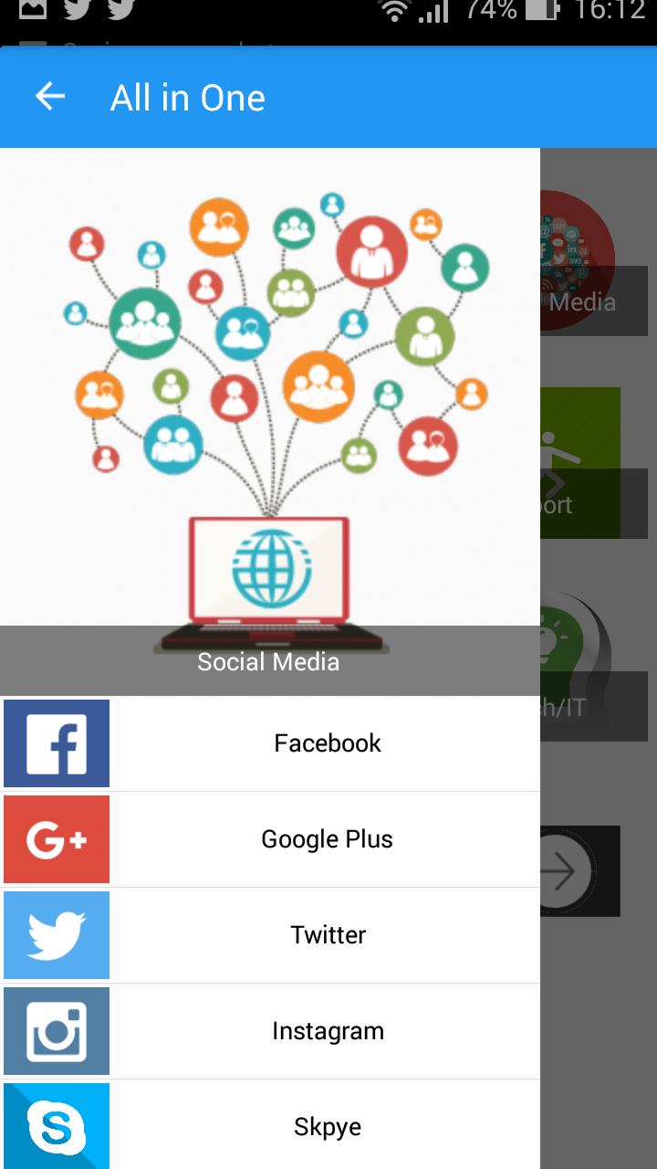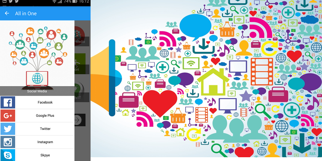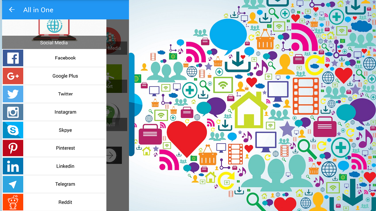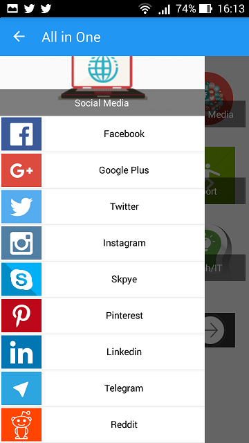 all in one social media aiosm, all in one for social media include most news sites, video websites and sharing media, Sport News, Blog and blogging website where you can find very interesting information for daily reading, top Search Engine like google ,bing, and also music lyrics search, Knowledge site like Quora, Email Service provides all in one place, and lastly is Tech news about phone, laptop, computer, latest games news. Here is list of all in of social media - Facebook - Twitter - Instagram - Skpye - Google+ - Pinterset - LinkdIn - Telegram - Reddit List of all in one news website where you can find top news magazine - CNN - BBC - The Huffington Post - The Guardin - Bloomberg - Time - Yahoo News - Nytimes -FoxNews - Washington Post - SkyNews List of top media sharing for video - Vimeo - DailyMotion - 9Gag Tv List of top website for Daily activities and knowledge sharing - Life Hack - Wiki How - Quora for Q and A - UrbanDictionary to feed you knowledge about new words and how use it - How Stuff Works Blog Sites - Mashable - TechCrunch - Quora - 9Gag Sport News Websites all in one Sport Sites - Football 365 - Sky Sport - BBC Sport - Goal - Fox Sport - Bein Sport Top Search Engine - Google - Bing - Yahoo - Baidu - DuckDuckGO - Lyrics World for music search Email Services Providers all Email in one - Gmail - Yahoo - Outlook Tech News - Awwwards - The Next Web - Wired - Techradar - MakeUseof All right reserved to their original owners Don't forget to rate & Suggest us any Other social Services.