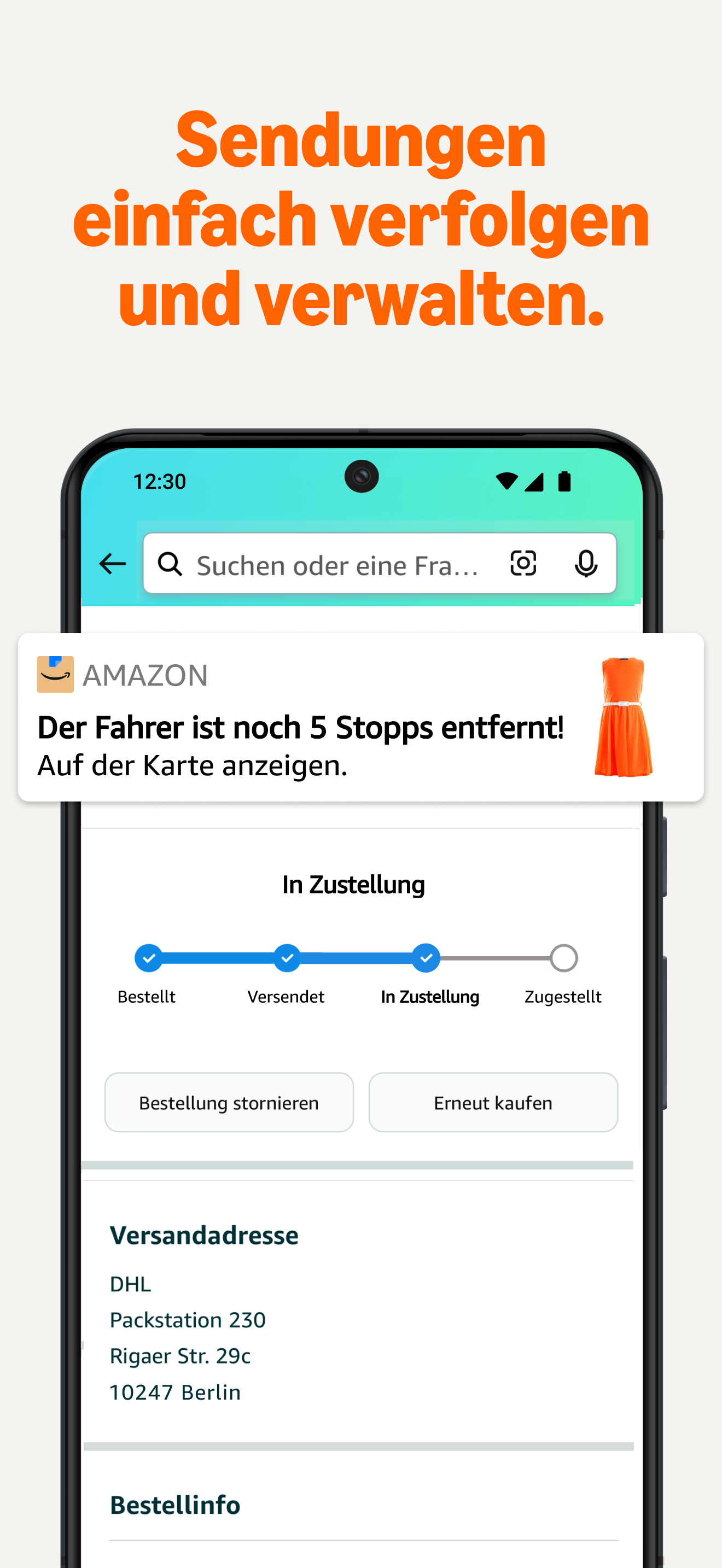 • Verfolgen Sie einfach Ihre Bestellung und erhalten Sie Versandbenachrichtigungen.