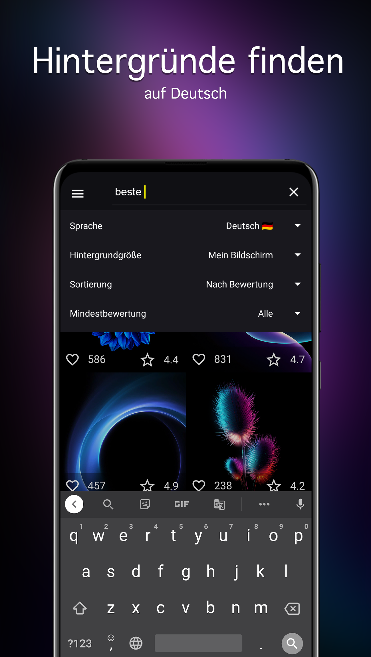 AMOLED Wallpapers & dunkle Hintergrundbilder in HD bis 4K. Finde schwarze und dunkle Motive über Kategorien, Tags und Farbsuche. Automatischer Wallpaper-Wechsel nach Zeitplan – schnell, flexibel, ohne Umwege. Ausgewählt und manuell moderiert vom 7Fon-Team. Dunkle und schwarze Hintergründe kommen auf AMOLED-Displays besonders gut zur Geltung. Gleichzeitig ist die Auswahl auch für OLED-Geräte geeignet – du findest Motive, die zu Theme, Icons und Stil passen. Ob minimalistisch, abstrakt oder Natur: Du entscheidest, wie dein Setup wirken soll. Highlights auf einen Blick • Handverlesene Bilder, bevor sie in den Katalog kommen. • Hohe Auflösung: Full HD (1080p) und höher – QHD, UHD und bis zu 4K. • Regelmäßig neue Inhalte, inklusive dunkler und AMOLED-Sammlungen. • Dutzende Kategorien und praktische Sortierung (Neu, Bewertung, Popularität). • Suche nach Stichworten, Tags und Farben – direkt in deiner Sprache. • Favoritenliste für schnellen Zugriff auf deine Lieblings-Wallpapers. Für wen ist die App? • Wenn du dunkle Hintergrundbilder suchst und schnell passende Motive finden willst. • Wenn du mehrere Wallpapers sammelst und sie automatisch wechseln lassen möchtest. • Wenn dir Auflösung wichtig ist und du gerne eine kuratierte Auswahl hast. Mehr Kontrolle bei der Auswahl • Vorschau in hoher Qualität, damit du Details und Kontrast beurteilen kannst. • Zuschneiden vor dem Setzen: wähle den passenden Bildausschnitt, bevor du das Wallpaper übernimmst. • Sortierung und Suche kombinieren: erst filtern, dann gezielt auswählen. So findest du schneller das passende Wallpaper 1) Wähle eine Kategorie, um die Auswahl einzugrenzen. 2) Nutze Sortierung, wenn du lieber neue oder beliebte Hintergründe sehen möchtest. 3) Suche über Tags oder Stichworte, wenn du ein bestimmtes Motiv brauchst. 4) Probiere die Farbsuche, wenn du den Hintergrund auf dein Farbschema abstimmen willst. Farbsuche – wenn du dein Setup matchen willst Wähle eine Farbe und entdecke passende Hintergrundbilder, die sich gut mit Icons, Widgets und Themes kombinieren lassen. Praktisch, wenn du einen einheitlichen Look suchst. Kategorien und Themen • Dunkel/Schwarz • Weltraum • Abstrakt • Natur • Tiere • Autos • … und weitere Kategorien im Katalog Wallpaper setzen oder speichern • Als Hintergrund festlegen – schnell und unkompliziert. • Auf Wunsch auch für den Sperrbildschirm. • Download für später: in der Galerie speichern oder auf der SD-Karte (wenn vom Gerät unterstützt). Automatischer Wechsel nach Zeitplan Du willst regelmäßig frische Hintergründe? Lege ein Intervall fest und wähle die Quelle (z. B. Favoriten oder Kategorien). Die App wechselt dann automatisch zwischen deinen ausgewählten Hintergrundbildern – ideal, wenn du Abwechslung willst, ohne jedes Mal neu zu suchen. Benachrichtigungen und Extras • „Bild des Tages“ und „Bild der Woche“ – Inspiration ohne ständiges Scrollen. • Vorschauqualität anpassen, um mobiles Datenvolumen zu sparen. • Teilen: sende Wallpaper an Freunde oder nutze das Motiv in Messengern (z. B. als Chat-Hintergrund in WhatsApp). Beispiel-Workflow • Suche nach Farbe oder Tag, speichere deine Favoriten und aktiviere dann den Auto-Wechsel. • Wenn du unterwegs bist, reduziere die Vorschauqualität, um Datenvolumen zu sparen. Hinweise • Speichern auf SD-Karte ist nur möglich, wenn dein Gerät eine SD-Karte unterstützt. • Chat-Hintergründe hängen von den Funktionen des jeweiligen Messengers ab. • Funktionen können je nach Android-Version und Gerät variieren.
