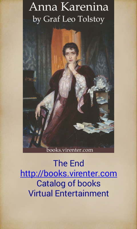 Anna Karenina (Paketname: com.virenter.books.AOUBGDLFNFTIQXGB) wird von Virtual Entertainment entwickelt und die neueste Version von Anna Karenina by Leo Tolstoy 8.31 wurde am 2. August 2024 aktualisiert. Anna Karenina by Leo Tolstoy liegt in der Kategorie von Bücher & Nachschlagewerke. Sie können alle Apps von dem Entwickler der Anna Karenina by Leo Tolstoy durchsuchen und 55 alternative Apps zu Anna Karenina by Leo Tolstoy auf Android finden. Derzeit ist diese APP kostenlos. Diese App kann auf Android 8.0+ auf APKFab oder Google Play heruntergeladen werden. Alle APK/XAPK Dateien auf APKFab.com sind original und 100% sicher, schnell herunterzuladen.