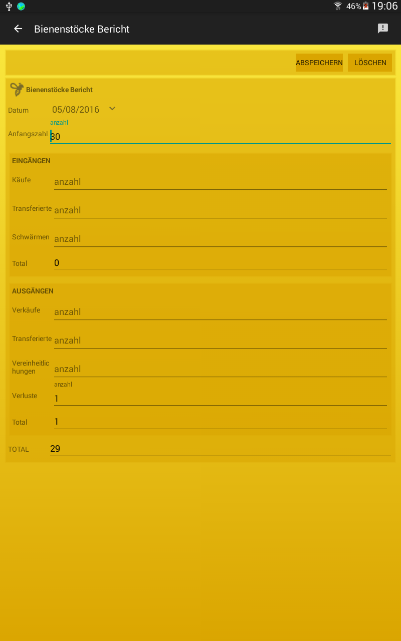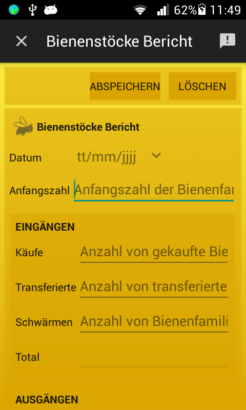 • Speichere Volksstärke und Gesundheitszustand jedes Bienenstocks auf.