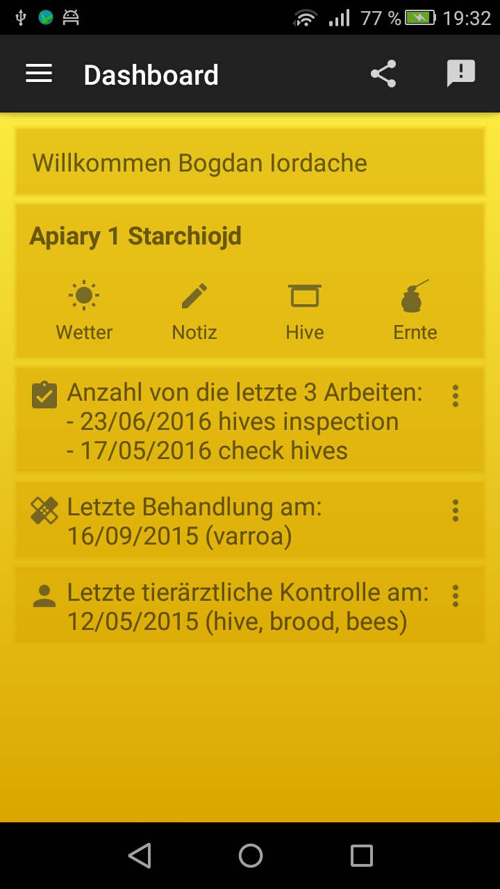 • Teile deine Bienenhaus Übersichtsinformation über Facebook, Gmail etc.