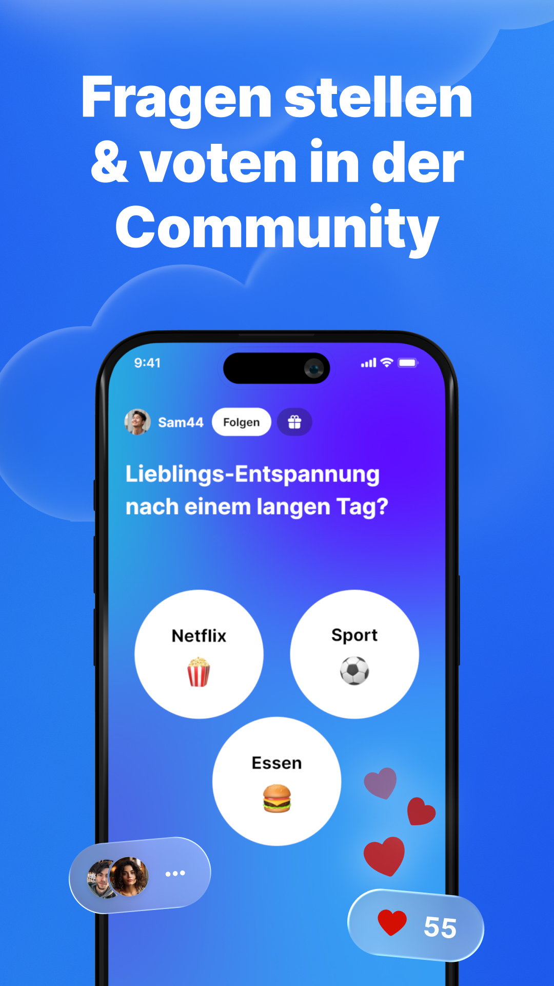Beantworte täglich neue Umfragen aus über 20 Kategorien – von aktuellen Themen über Politik bis hin zu Sport – und sieh sofort, wie andere denken. Teile deine eigene Meinung und erhalte in nur wenigen Minuten hunderte Antworten auf deine anonymen Fragen.