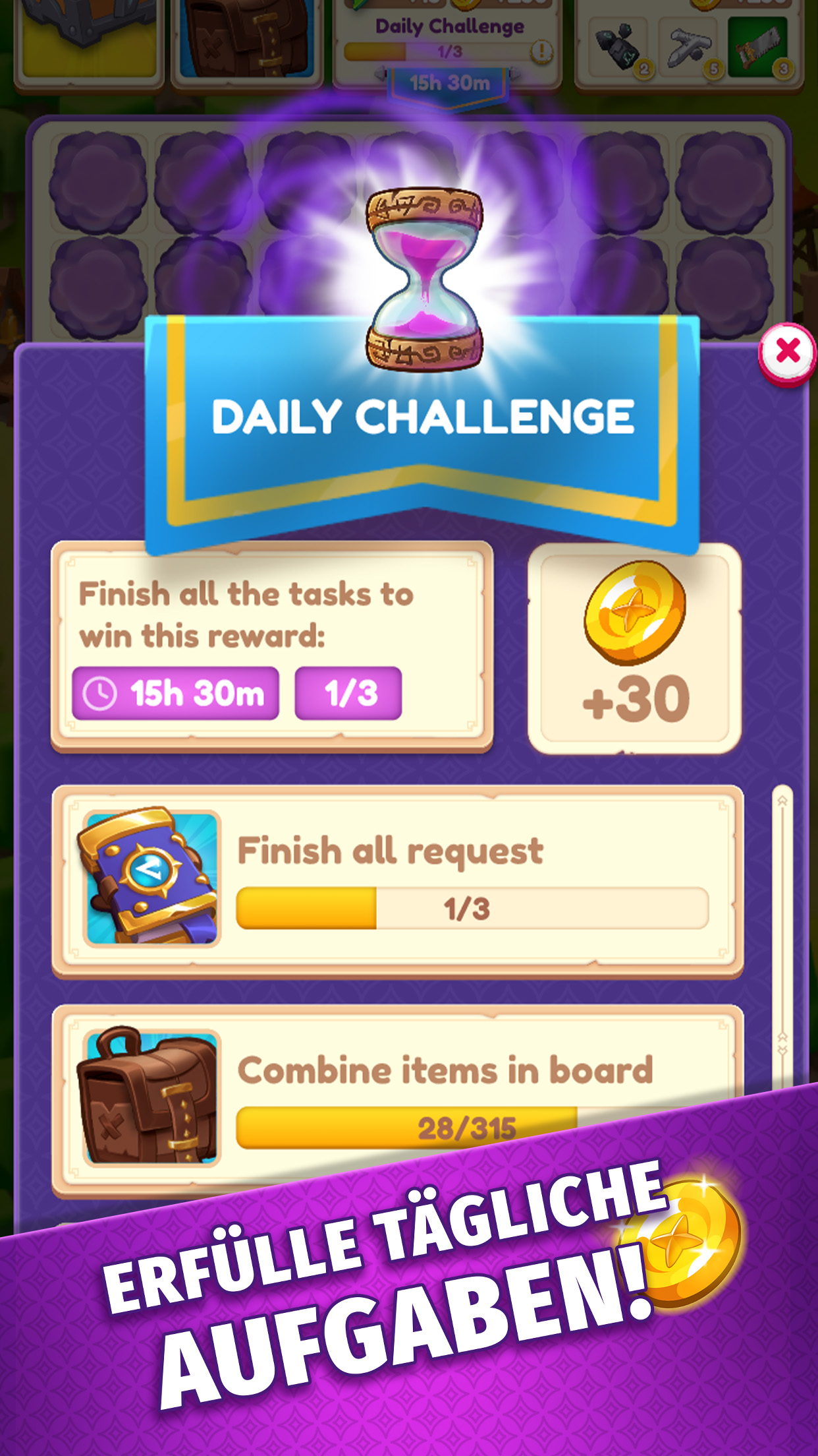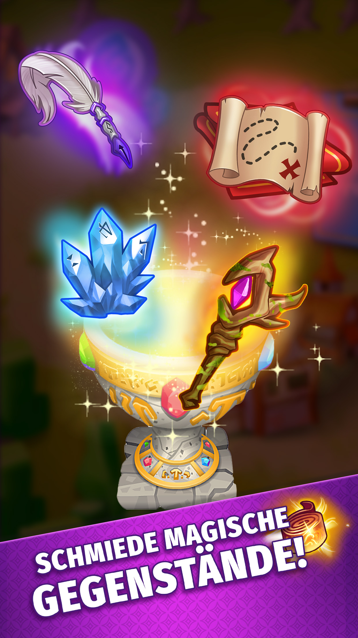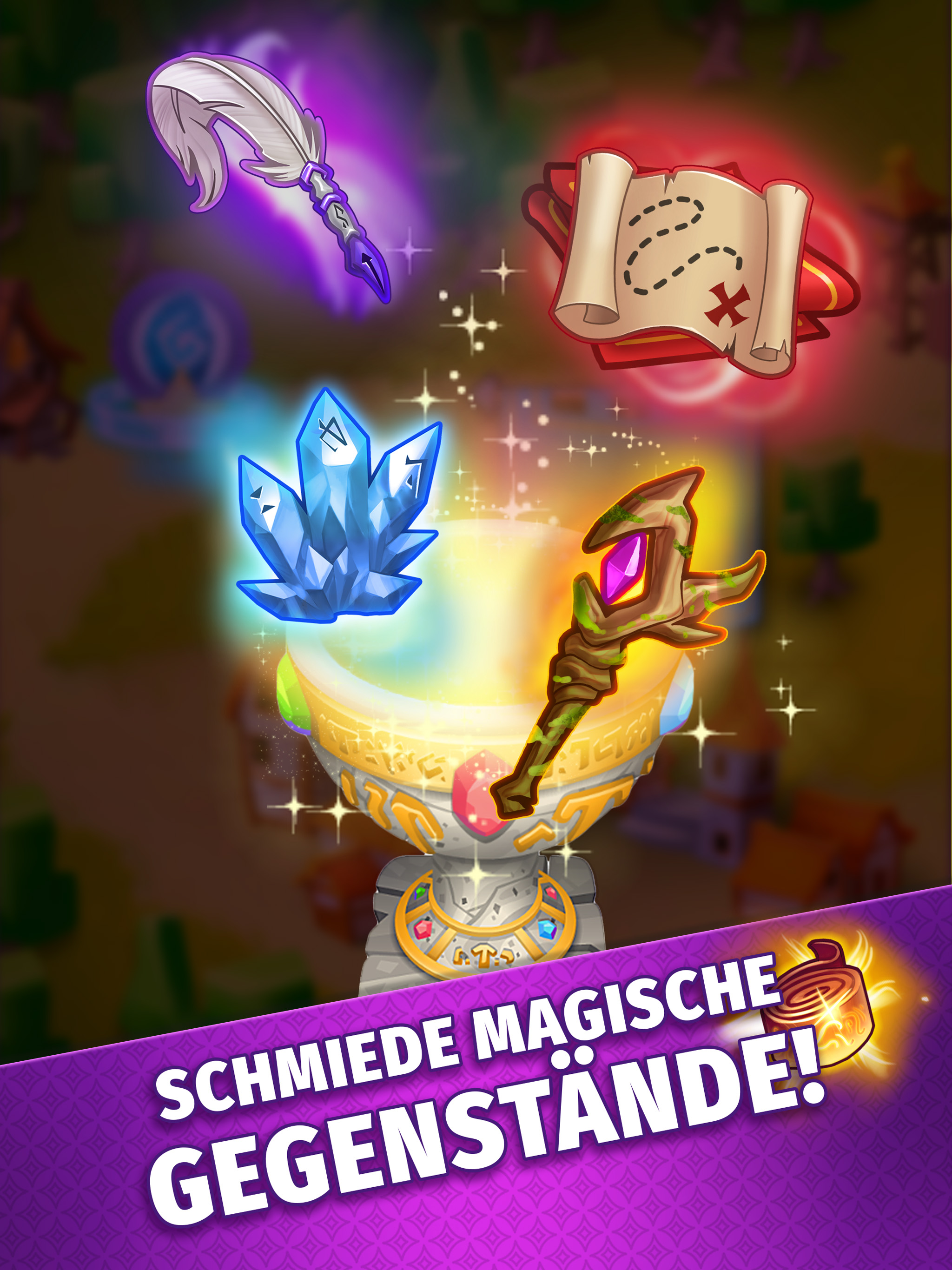 Kombiniere viele verschiedene magische Gegenstände, um neue und geheimnisvolle Objekte zu erschaffen und den Bewohnern eines Fantasy-Dorfes zu helfen! Führe magische Gegenstände zusammen und verschmelze sie zu besseren Materialien. Mische Gegenstände in deinem eigenen Alchemiekessel, um unglaubliche und manchmal überraschende Ergebnisse zu bekommen!