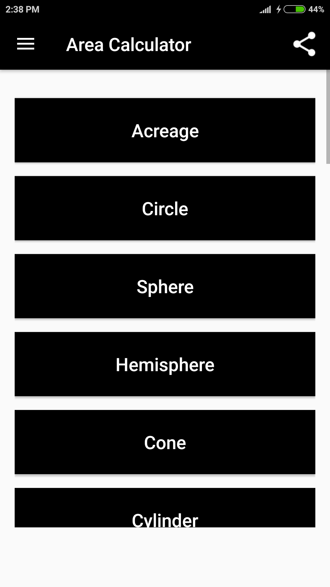 Flächenrechner Durchführen oder Überprüfen der Ergebnisse von Flächen- und Volumenberechnungen, bei denen es sich um Quadrate, Rechtecke, Kreise, Dreiecke, Rauten, Pyramiden, Würfel, Kegel, Kugeln, Tonnen, Rohre, Drachen, Silos, Ellipsen, Trapez, Polygone, Sand usw. handelt. Kurven, Abstand, Winkel, gerade Linien, Kreise, Dreiecke, Quadrate usw. mit diesen Flächen- und Volumenrechnern. Das Hauptziel dieser Taschenrechner ist es, Studenten, Fachleuten und Forschern dabei zu helfen, die Ergebnisse von zwei- oder dreidimensionalen Längen-, Flächen- und Volumenberechnungen schnell durchzuführen oder zu überprüfen. Diese App umfasst: Flächenrechner Kreisrechner Kugelrechner Hemisphäre-Rechner Kegelrechner Zylinderrechner Würfelvolumen-Rechner Kubikflächenrechner Quadratischer Rechner Rechteck-Rechner Pyramidenrechner Fassvolumen-Rechner Rohrvolumenrechner Kite Flächenrechner Rhombus-Rechner Rechteckiger Quaderrechner Reiher-Dreieck-Flächenrechner Ellipsen-Rechner Trapezflächenrechner Normaler Polygonflächenrechner Zylinderförmiger Silovolumenrechner Steinschätzungsrechner Sandschätzungsrechner Backsteinmörtel-Rechner Dreieck-Flächenrechner Parallelogramm-Flächenrechner Runder Sektorflächenrechner Volumengewicht-Rechner Diese App ist nützlich für die Berechnung der Landfläche für Grundstücke aller Formen und Größen, sei es Dreiecke, Rechtecke, Kreise oder einfache Polygone.