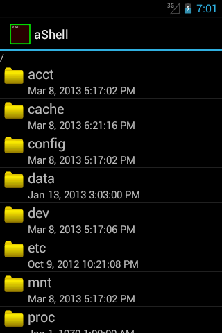 The root file explorer in aShell allows you to browse your device and if it is rooted you have access to any directory. The explorer allows you to sort and filter the files.