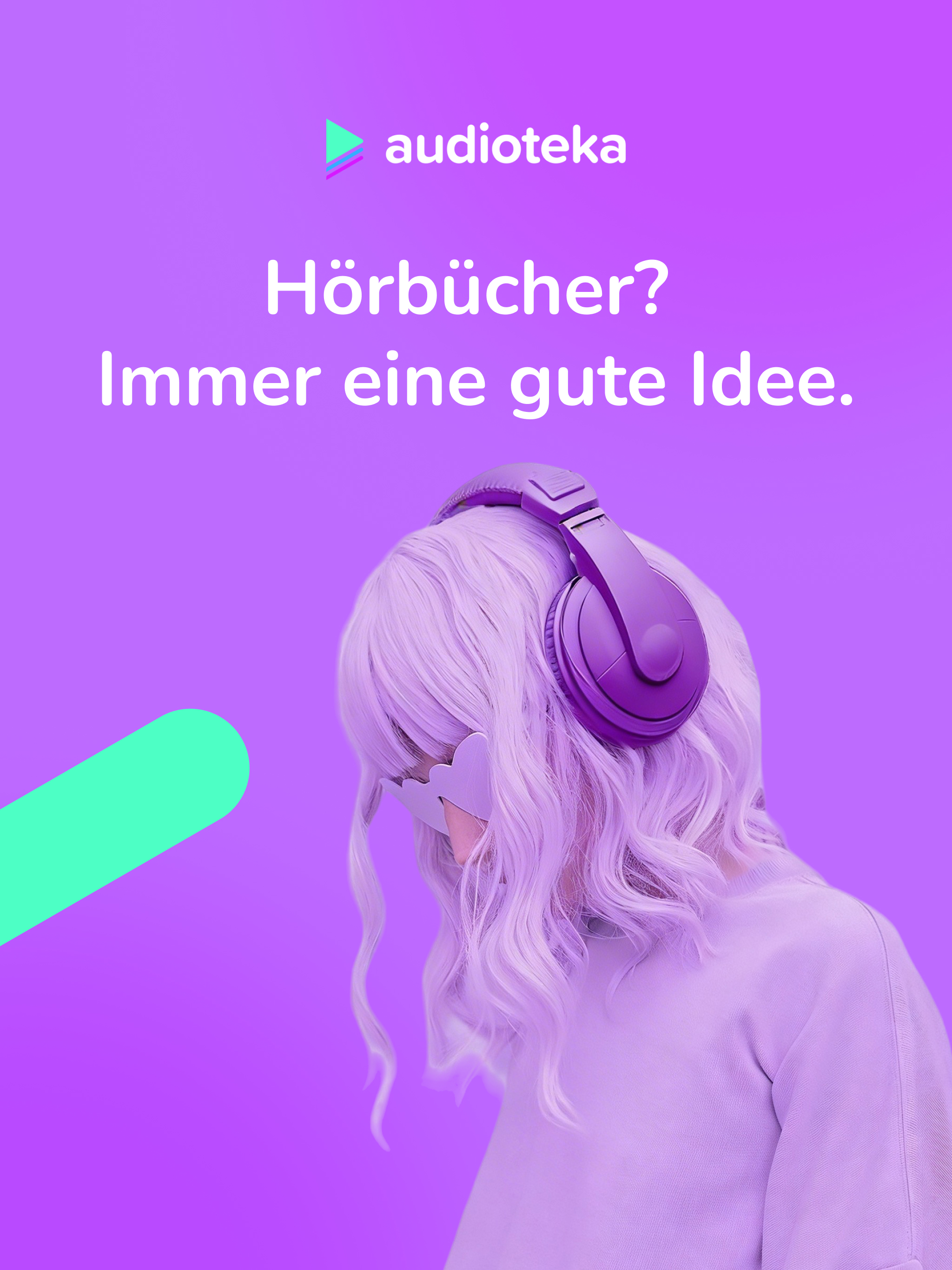 Hörbücher jederzeit und überall – mit Audioteka wird dein Alltag zur Story. Entdecke tausende fesselnde Geschichten, die dich inspirieren, unterhalten und begleiten. Streame deine Lieblingshörbücher oder lade sie herunter und höre offline – ganz flexibel, genau so, wie es in dein Leben passt.