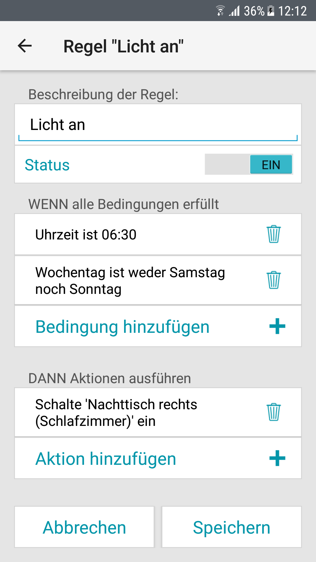 Die Erstellung von Regeln, die zu Ihrem Leben passen, ist fast so einfach wie das Stellen des Weckers auf Ihrem Smartphone. Sie benötigen dazu kein Wissen über KNX. Um die EcoButler Automatisierungs-Funktionen nutzen zu können benötigen Sie die EcoButler Server App. Erfahren Sie hier mehr: