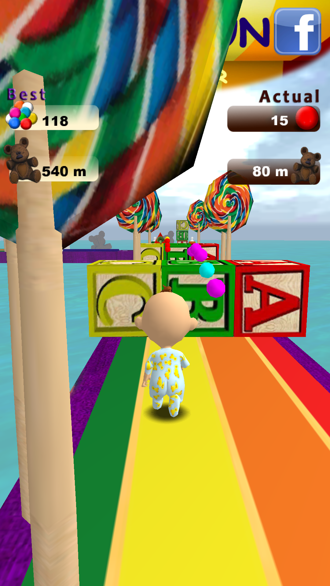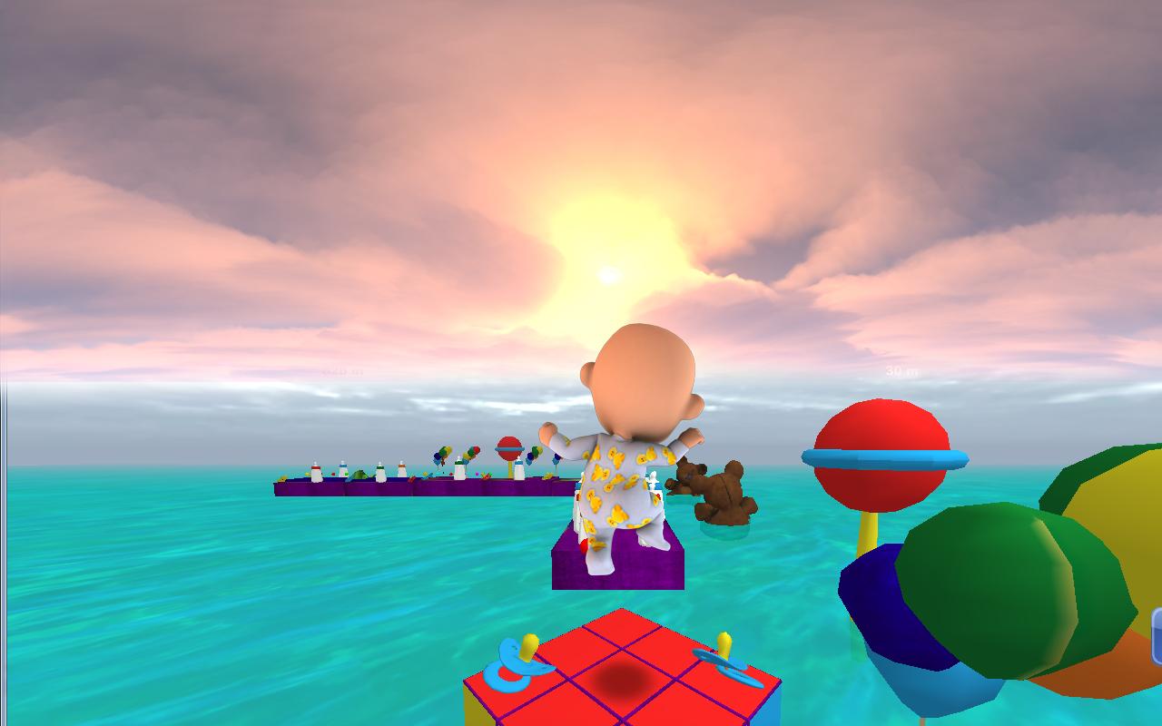 Deine Aufgabe ist es, zu versuchen seinen Traum so lang und angenehm wie möglich zu machen, indem Du ihm hilfst all die Spielsachen zu vermeiden, die seinen Weg behindern. Renne überspringe und weiche eine große Menge Schaukelpferde, Dreiräder, grüne Plüsch Igel und springe von riesigen Würfeln, um das Baby vor dem Absturz ins Wasser e zu bewahren etc.