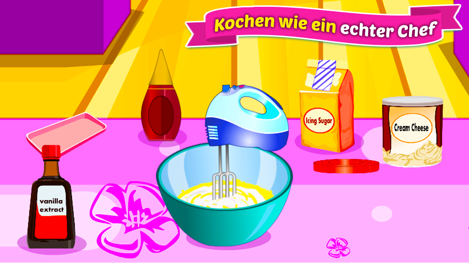 Nach den Anweisungen im Spiel bereitet eine köstliche Vanillecreme für die Dekoration der Kuchen.