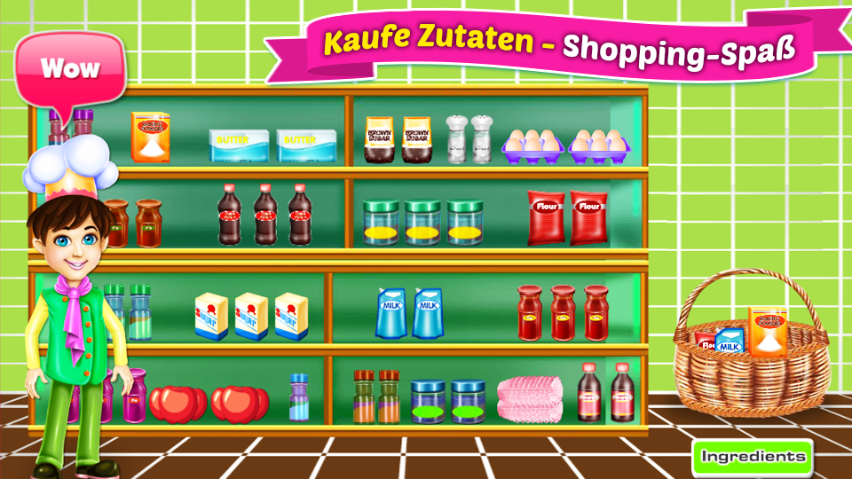 Starten Sie das Spiel in einem Geschäft, wo Sie die Zutaten finden müssen.