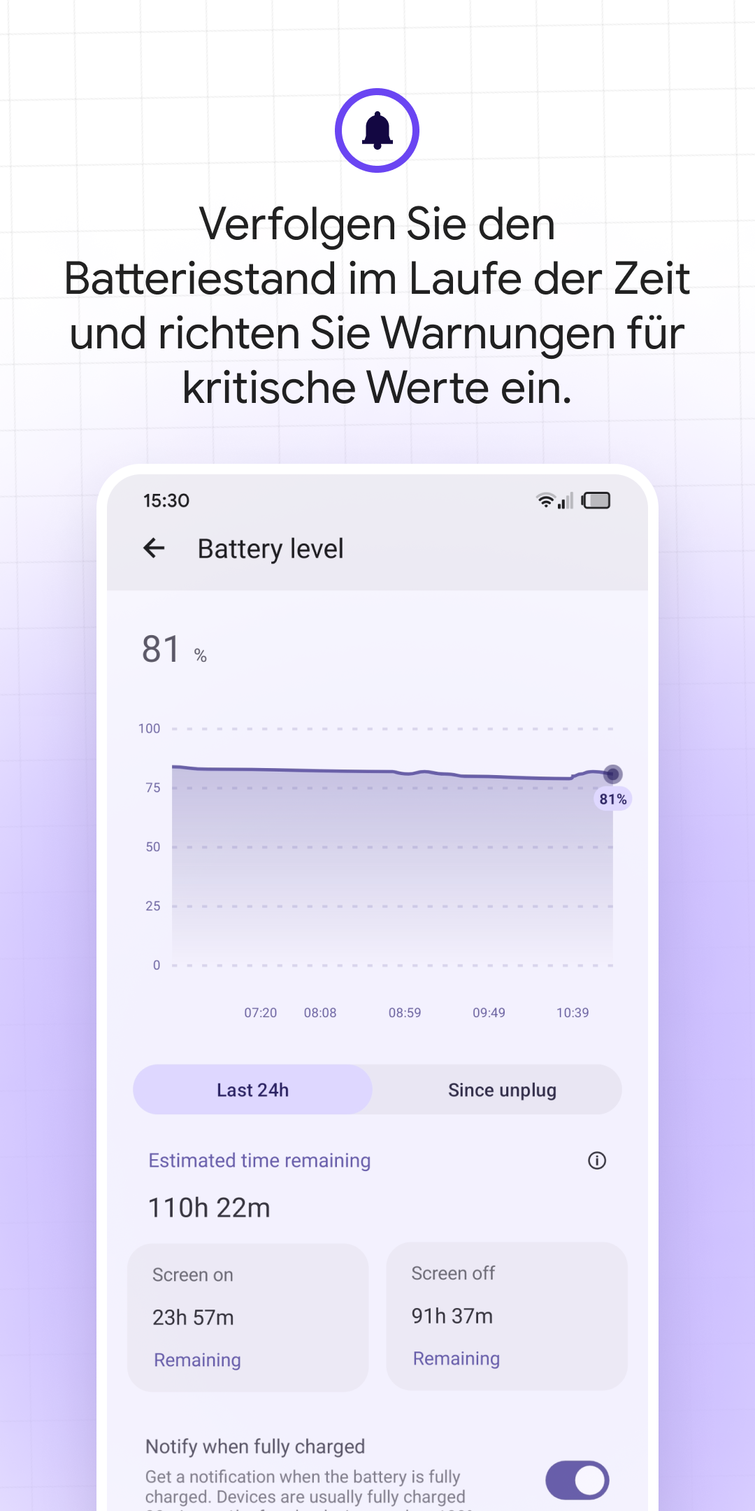 Akku-Alarme & BenachrichtigungenBleibe mit hilfreichen Alarmen immer informiert.
