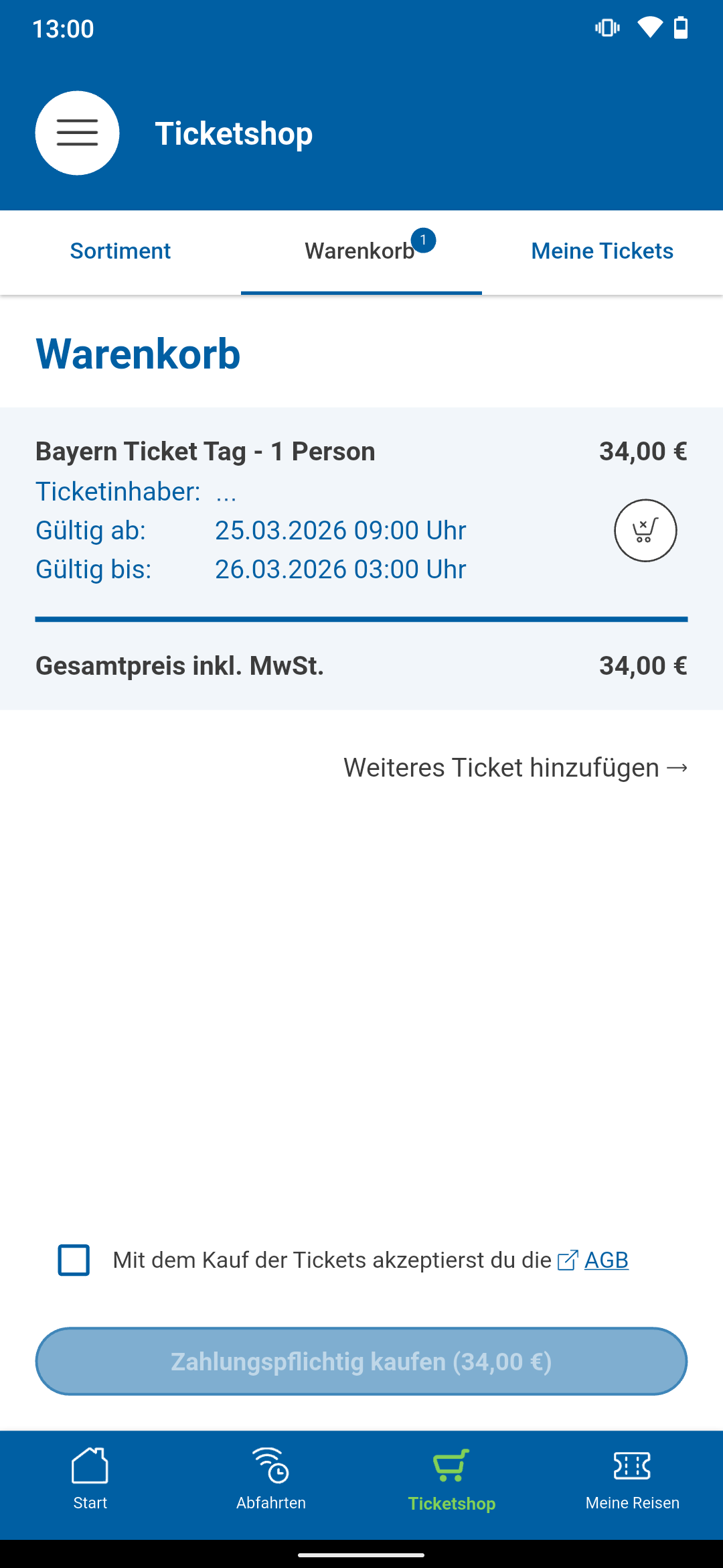 - Neue MVV-Tickets: Jetzt kannst du ausgewählte MVV-Tickets (Einzelticket Erwachsene/Kind, Kurzstrecke, Tageskarte Erwachsene/Gruppe/Kind/Fahrrad; Zonen M bis 12) kaufen - Bayern-Ticket für Tag und Nacht: Kaufe dir das Bayern-Ticket für 1-5 Personen - Barrierefreiheit: Verschaffe dir einen Überblick über die jeweiligen Bedingungen und Ausstattungen an den bayerischen Haltestellen - Neue Sharing-Dienste: Ab jetzt Sharinganbieter Isarflitzer, Donkey Republic Straubing und Donau Donkeys verfügbar