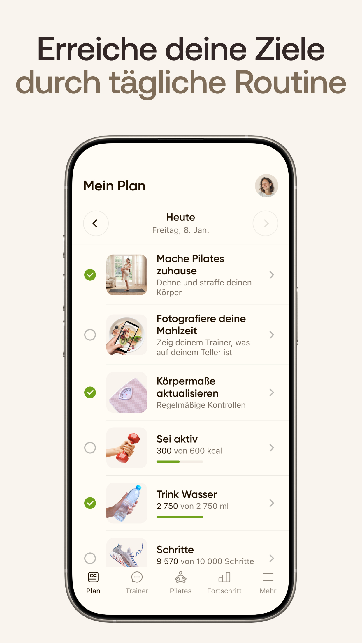 Entdecke Wohlbefinden, das genau auf dich und deine Ziele zugeschnitten ist. Erhalte Trainings- und Ernährungspläne, die dir helfen, ohne Druck einen nachhaltigen Lebensstil zu entwickeln. FÜNF GUTE GRÜNDE, BetterMe ZU INSTALLIEREN: 1. Ein Plan, der zu deinen Zielen passt Egal, ob du abnehmen, Muskeln aufbauen oder fit bleiben möchtest – wir haben die passende Lösung für dich. Verändere deinen Körper mit einem Trainings- und Ernährungsplan, der sich an deinen Alltag, deine Vorlieben und deinen Lebensstil anpasst. 2. Behalte dein Wohlbefinden im Blick Von Aktivität und Kalorien über Wasseraufnahme bis hin zu Fasten: Unsere Tracker helfen dir, neue gesunde Gewohnheiten zu entwickeln. Detaillierte Statistiken zeigen dir täglich, wie du vorankommst, und machen deinen Fortschritt sichtbar. 3. Persönliches 1:1-Coaching Möchtest du deine Ergebnisse verbessern? Mit dem Upgrade auf persönliches Coaching erhältst du tägliche Check-ins und individuelle Unterstützung von deinem Coach. Bleib motiviert und auf Kurs – mit professioneller Begleitung bei jedem Schritt. Möchtest du deinen Trainingsplan anpassen, Ernährungstipps erhalten oder einen Motivationsschub bekommen? Dein Coach ist nur eine Nachricht entfernt! 4. Challenges für jedes Ziel Fordere dich selbst mit geführten Challenges rund um Training und Ernährung heraus. Ganz gleich, welches Ziel du verfolgst – du erhältst einen klar strukturierten Plan, der dich unterstützt und echte Ergebnisse liefert. 5. Rundumblick auf dein Wohlbefinden Erhalte Einblicke in deine Wellness-Reise mit dem BetterMe Fitness Tracker und der Smart Scale. Verfolge Schlafqualität, tägliche Schritte, Herzfrequenz und Körperzusammensetzung, um zu verstehen, wie deine Gewohnheiten dein Wohlbefinden beeinflussen. BetterMe ist deine All-in-One-App für verschiedene Workout-Arten, leicht verständliche Ernährungspläne und hilfreiche Tipps! So helfen wir dir, erfolgreich zu sein: Trainingsplan: Komm mit kurzen und effektiven Workouts in bessere Form. Leckere Ernährungspläne: Genieße köstliche Gerichte, speziell für dich ausgewählt! Unsere einfachen Video-Rezepte machen das Kochen leicht. Intuitiver Kalorientracker: Behalte deine tägliche Kalorien- und Makronährstoffzufuhr im Blick. Persönlicher Coach: Du bist auf dieser Reise nicht allein! Upgrade für professionelle Unterstützung bei jedem Schritt. Wasser- und Schritttracker: Behalte deine täglichen Ziele im Auge und kontrolliere Hydration und Aktivitätslevel. Workouts für alle: Egal ob Pilates, Yoga, Calisthenics, Laufen oder Gehen – wir haben über 4.000 Workouts, passend zu deinem Stil und Fitnesslevel. Wir bieten flexible Abo-Modelle über Google Play, damit du das passende Angebot für dich auswählen kannst. Hinweis: Abonnements verlängern sich automatisch innerhalb von 24 Stunden vor Ablauf der kostenlosen Testphase oder des aktuellen Abonnementzeitraums. Du kannst dein Abo jederzeit über die Einstellungen deines Google-Play-Kontos verwalten oder kündigen. Genaue Erfassung mit dem BetterMe Fitness Tracker* Behalte deine Gesundheits- und Fitnessdaten mit dem BetterMe Fitness Tracker im Blick. Der Tracker verbindet sich einfach mit der BetterMe App und liefert Einblicke in deine Schritte, Herzfrequenz und deinen Schlaf. Der BetterMe Fitness Tracker kann eingehende Anrufe und SMS-Benachrichtigungen von deinem gekoppelten Smartphone anzeigen, sofern du der BetterMe App die erforderlichen Berechtigungen für Anrufe oder SMS erteilst. Nutzungsbedingungen – https://betterme.world/de/terms Datenschutzrichtlinie – https://betterme.world/de/privacy-policy Abo-Bedingungen – https://betterme.world/de/subscription-terms *Die BetterMe App unterstützt ausschließlich den BetterMe Fitness Tracker.