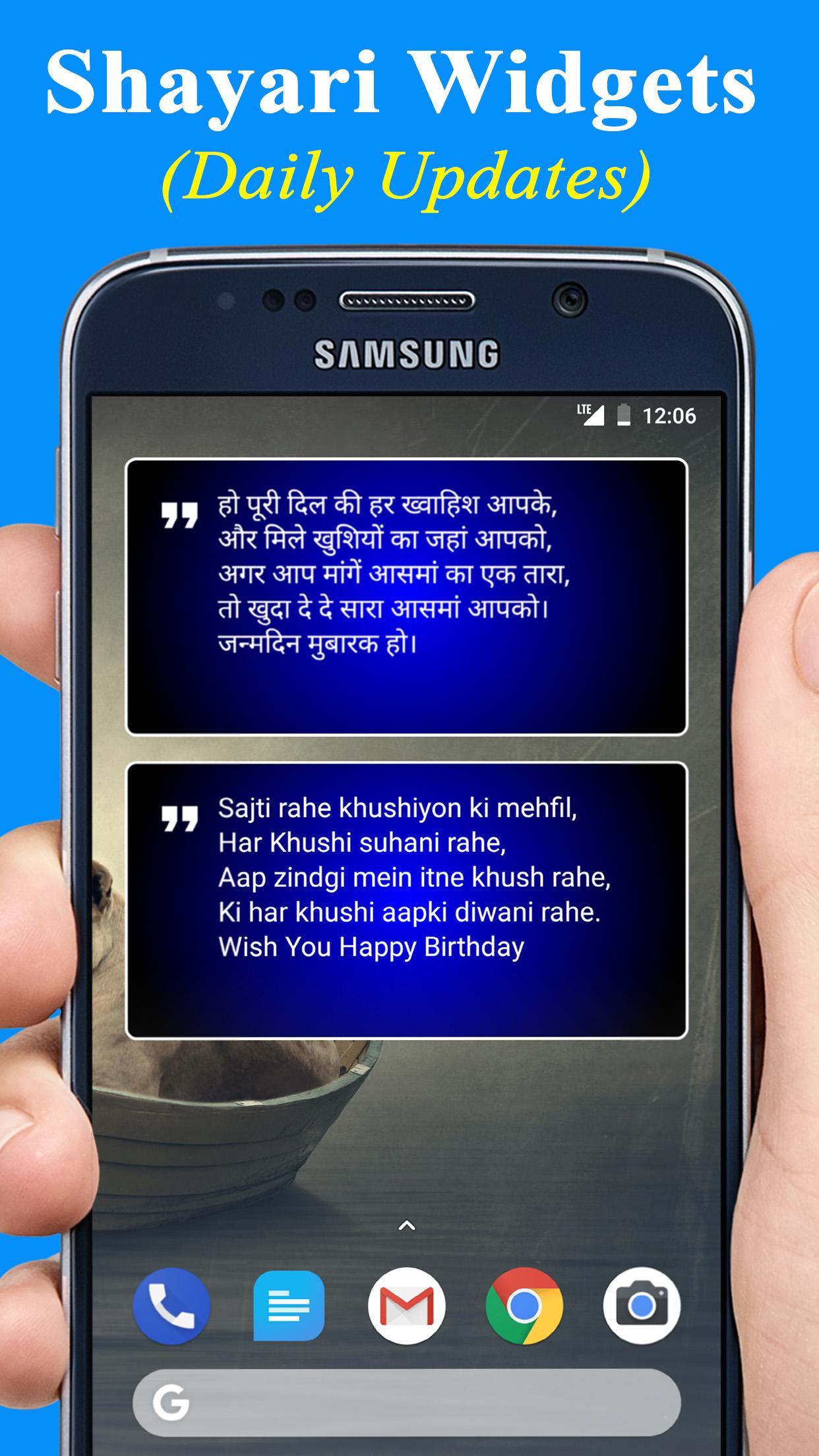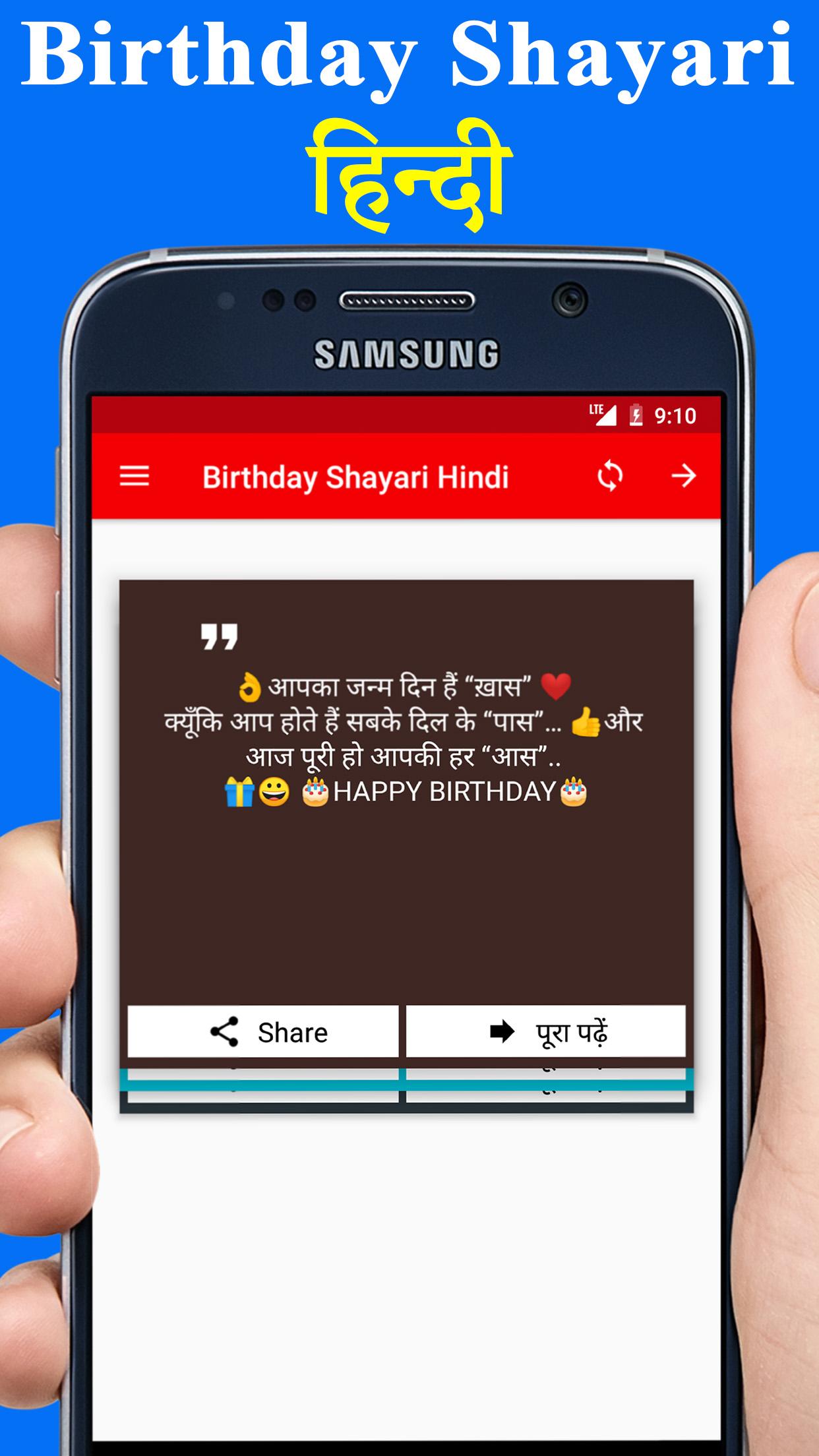Diese App bietet Ihnen die beste Sammlung von Geburtstagsshayari für 2020 . Birhday wünscht Shayari für Freunde, Bruder, Schwester und deine Liebe. Diese Shayari zum Geburtstag können als SMS an das Handy oder als WhatsApp-Nachricht gesendet oder auch als neuer WhatsApp-Bildstatus verwendet werden. Schicken Sie Ihren Lieben mit diesen Geburtstag Shayari in Hindi Sprache Wünsche. 🎁 FUNKTIONEN ★ Legen Sie Ihren Geburtstagswunsch Shayari beiseite 🔥 Sie können den besten Shayari zum Geburtstag mit einem Lesezeichen versehen, indem Sie die Karte nach rechts wischen. ★ Birthday Shayari in indischer Schrift 🇮🇳 Für Happy Birthday Shayari wird der native Hindi-Font verwendet. ★ Einfach zu bedienen 📲 Sehr einfach zu bedienende Benutzeroberfläche, streichen Sie einfach nach links und rechts, um die schönen Shayari-Liebesmitteilungen zum Geburtstag auf Hindi zu lesen und sie einfach an Ihre Freunde weiterzugeben. ★ Funktioniert offline 😎 Diese App bietet dir den besten Shayari zum Geburtstag ohne Internetverbindung. ★ Holen Sie sich den neuesten Geburtstag Shayari 😎 Sie können die neueste Version von Birthday Shayari in Hindi aus der Online-Datenbank herunterladen und die Nachrichten später lesen. ★ Shayari einreichen 😎 Senden Sie einfach Ihren eigenen Shayari zum Geburtstag im Text- und Sprachformat. → SMS-Kategorien: • Geburtstag Shayari für Freund • Geburtstagsliebe Shayari • Geburtstag Shayari für Bruder • Geburtstag Shayari für Schwester • Geburtstag Shayari für Ehemann • Freundin Geburtstag Shayari Wir haben eine einzigartige Sammlung von Geburtstag Shayari in Hindi für 2020. Teilen Sie Ihre Wünsche, Liebe, Gefühle und Emotionen mit diesen Hindi Shayari zum Geburtstag. 🎁