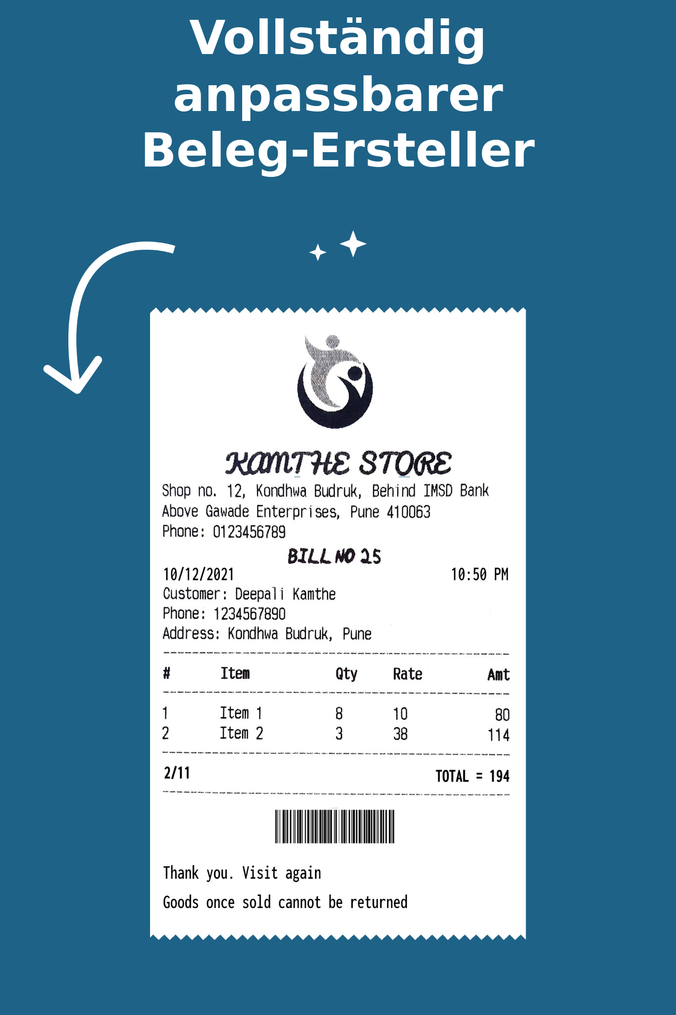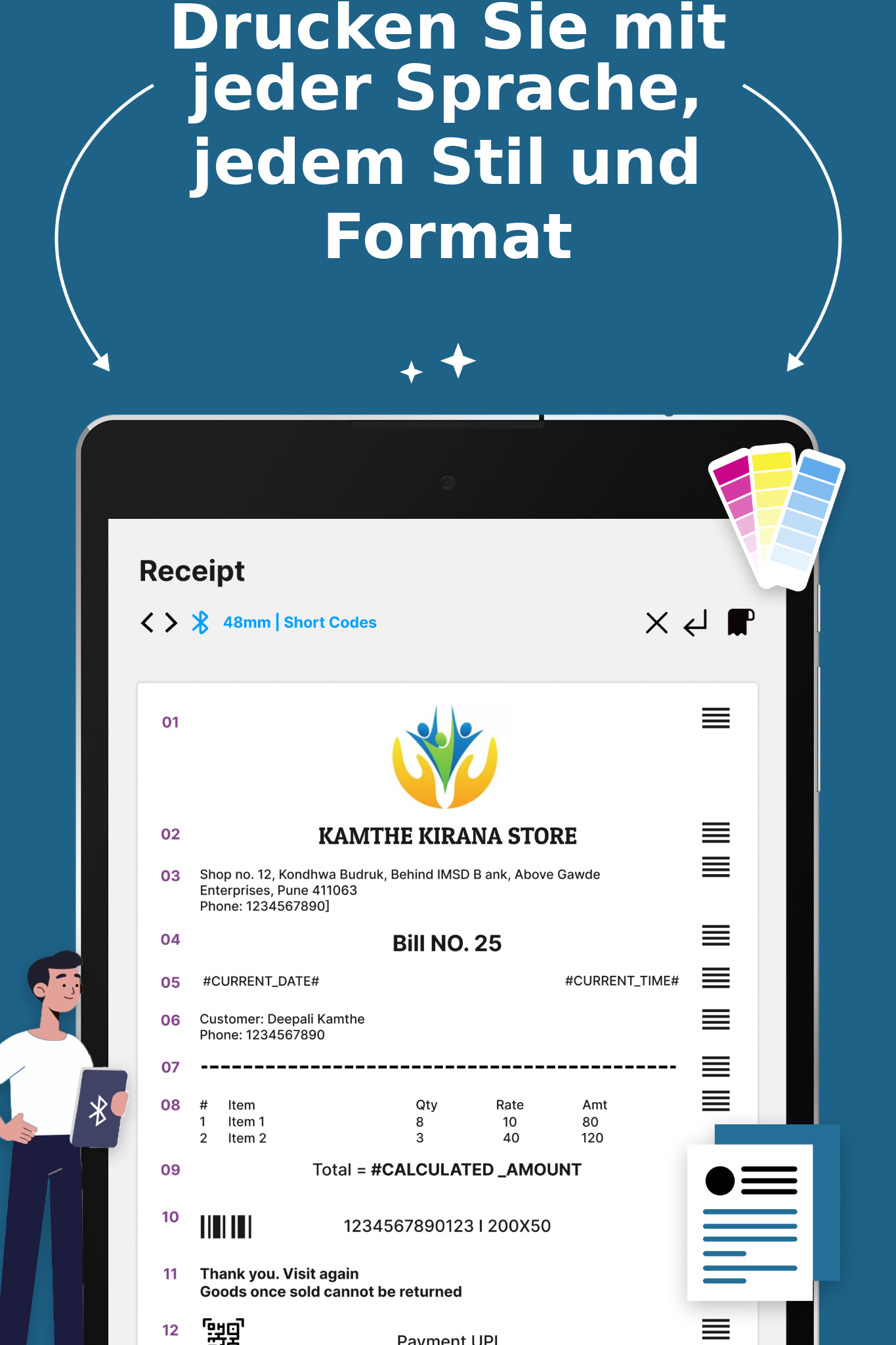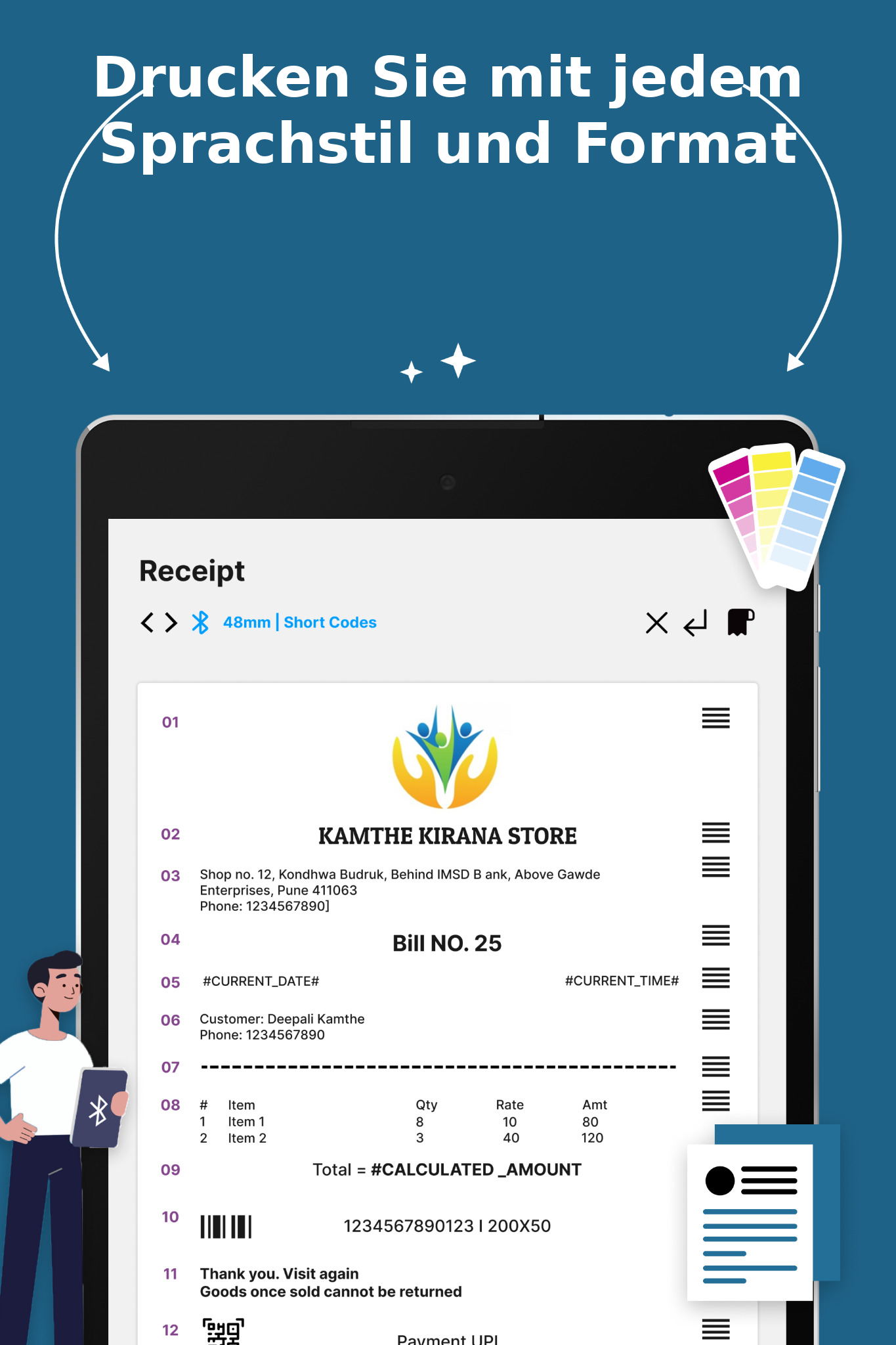 VOLLSTÄNDIG ANPASSBARER RECEIPT-HERSTELLER & MOBILE POS-THERMODRUCK-APP