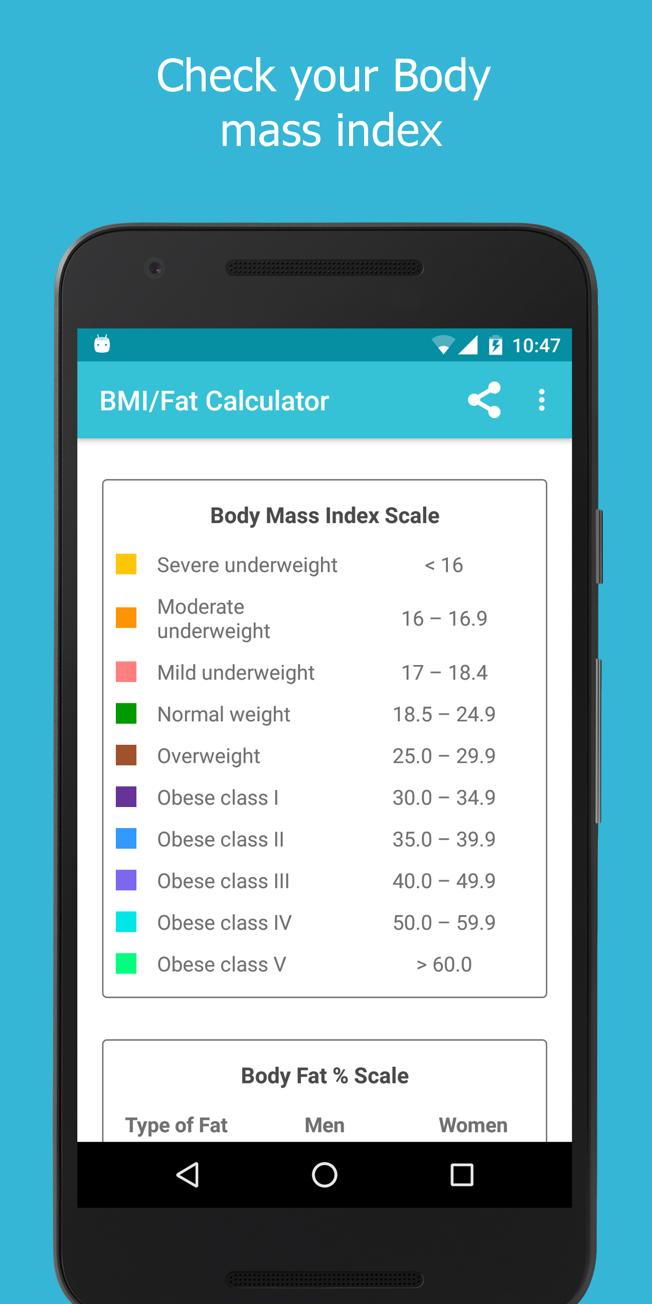 BMI / Fat / Weight Calculator