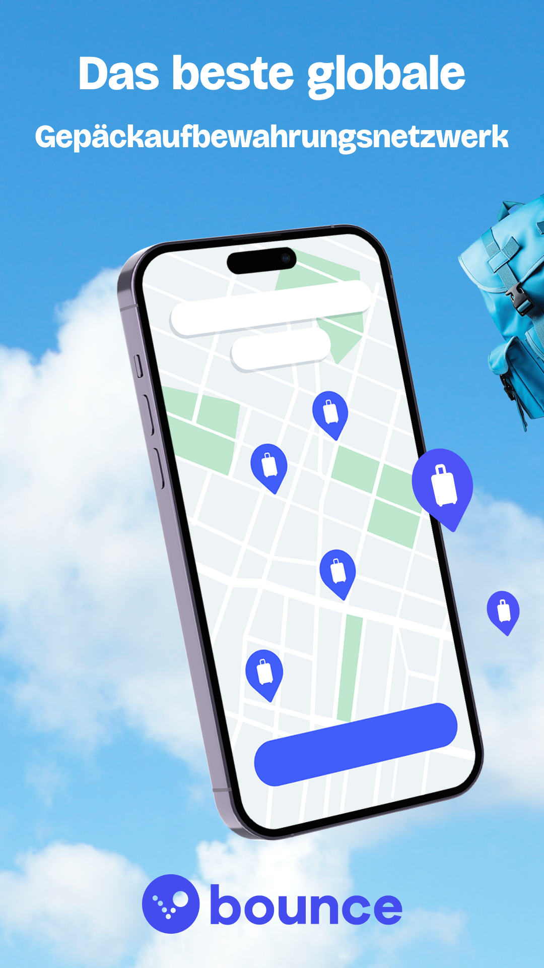 Vereinfache deine Reise mit Bounce, dem besten globalen Netzwerk für die Gepäckaufbewahrung. Bounce ist das Gepäckaufbewahrungsnetzwerk, dass überall dort ist, wo du auch bist, egal ob du um die Welt oder um die Ecke reist. Wir sind hier, um deine Sachen sicher aufzubewahren, damit deine Hände für dein nächstes Abenteuer frei sind. Erkunde jeden Ort unbeschwert, egal, wo du hingehst - Finde uns in 100 Ländern überall auf der Welt. - Unser Netzwerk wird von über 30.000 vertrauenswürdigen Partnern in über 4.000 Städten betrieben. - Egal, ob du im Urlaub, auf einer Geschäftsreise oder im lokalen Umfeld bist, hol das Meiste aus jedem Ort heraus, ohne dich um deine Sachen sorgen zu müssen. Buchen, Abgeben und Erkunden mit nur einem Tippen - Finde und buche einen gelegenen Lagerplatz in 2 Minuten. - Ein nahtloses QR-Code-System macht das Abgeben und Abholen schnell und sicher. - Teile deine Buchungsdetails mit Freunden oder speichere sie für den Offline-Zugriff ab. Bleibe bei Planänderungen flexibel - Zahle einen erschwinglichen Tagespreis für die Lagerung statt einem Stundenpreis. - Du kannst deine Buchung vor dem Abgabezeitpunkt kostenlos stornieren. - Füge einfach Gepäckstücke hinzu, ändere deine Buchungszeit oder storniere deine Buchung direkt über die App. Sichere Aufbewahrung für deine Sachen - Unsere zuverlässigen Partner bewahren deine Sachen in abgesicherten Bereichen ihrer Geschäfte auf. - Unsere Partner sind echte Personen, welche auf deine Sachen aufpassen. - Im unwahrscheinlichen Fall eines Diebstahls, Verlusts oder einer Beschädigung sind deine Sachen bis zu einem Betrag von 10.000 $ versichert. Weiß, dass du rund um die Uhr unterstützt wirst - Unser dediziertes Support-Team für die Gepäckaufbewahrung ist immer bereit zu helfen, auch nachts oder am Wochenende. - Kontaktiere unser Support-Team oder unseren Bounce-Partner ganz einfach über die App. - Egal, welche Fragen oder Sorgen du hast: Wir sind da, um zu helfen. Wie es funktioniert 1. Buche in der App Lade die App herunter und wähle einen gelegenen Gepäcklagerplatz aus. 2. Begib dich zum Geschäft Zeige dem Bounce-Partner deine Buchungsinformationen und gib dein Gepäck ab. 3. Genieße deinen Tag Hol alles aus deinem Tag heraus und zeige danach deine Bestätigung vor, um deine Sachen abzuholen.