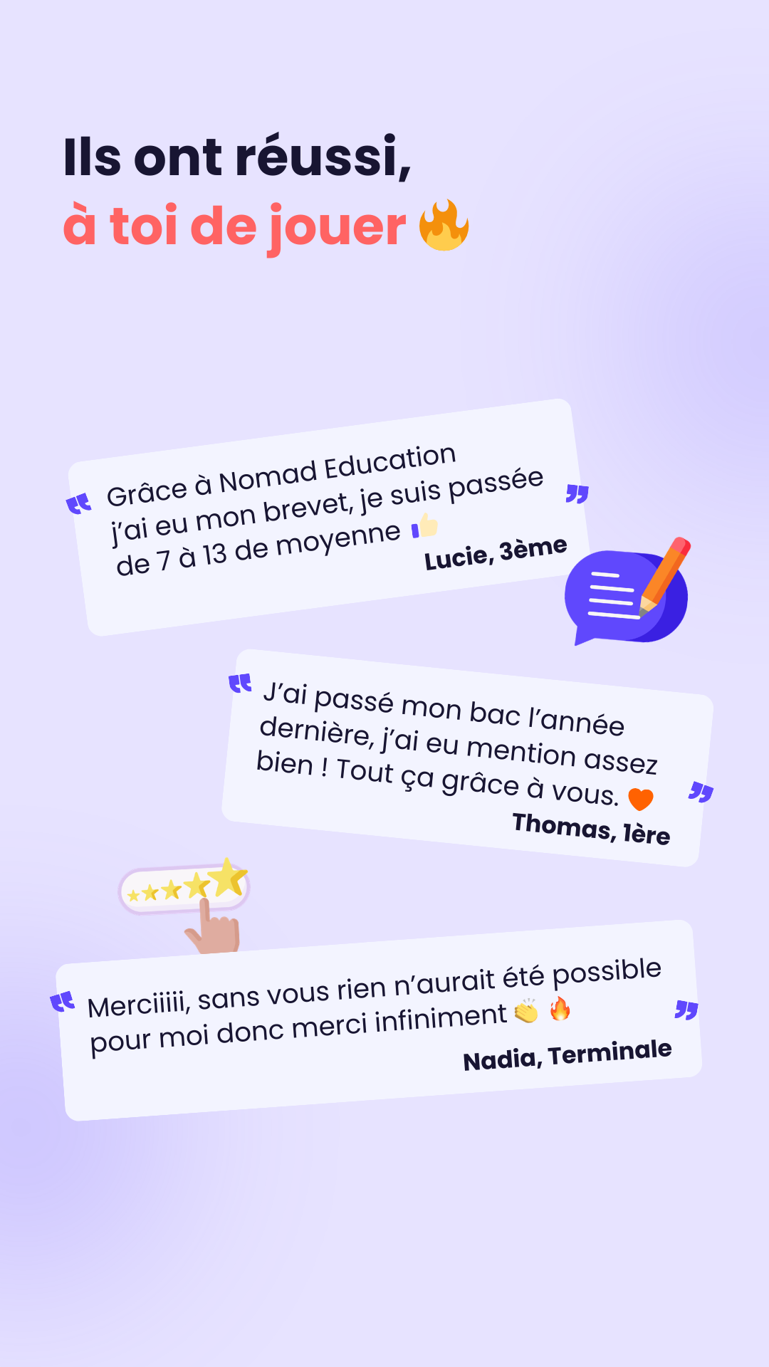 Von der Grundschule bis zum Gymnasium, von der BTS bis zur DUT, von der DCG bis zum PASS/LAS: Nomad deckt 400 Abschlüsse und alle Fachrichtungen ab – allgemeinbildend, technisch und berufsbezogen.