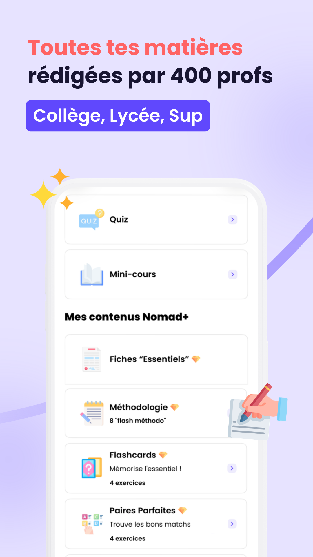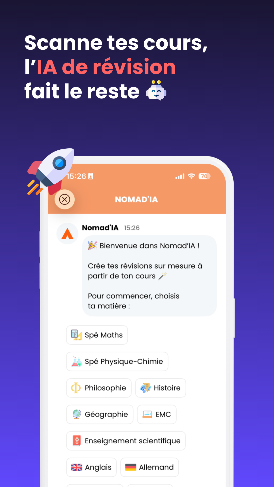 - Et surtout... Nomad'IA : scanne tes cours... Notre IA te génère les quiz, cours, flashcards associées ;)