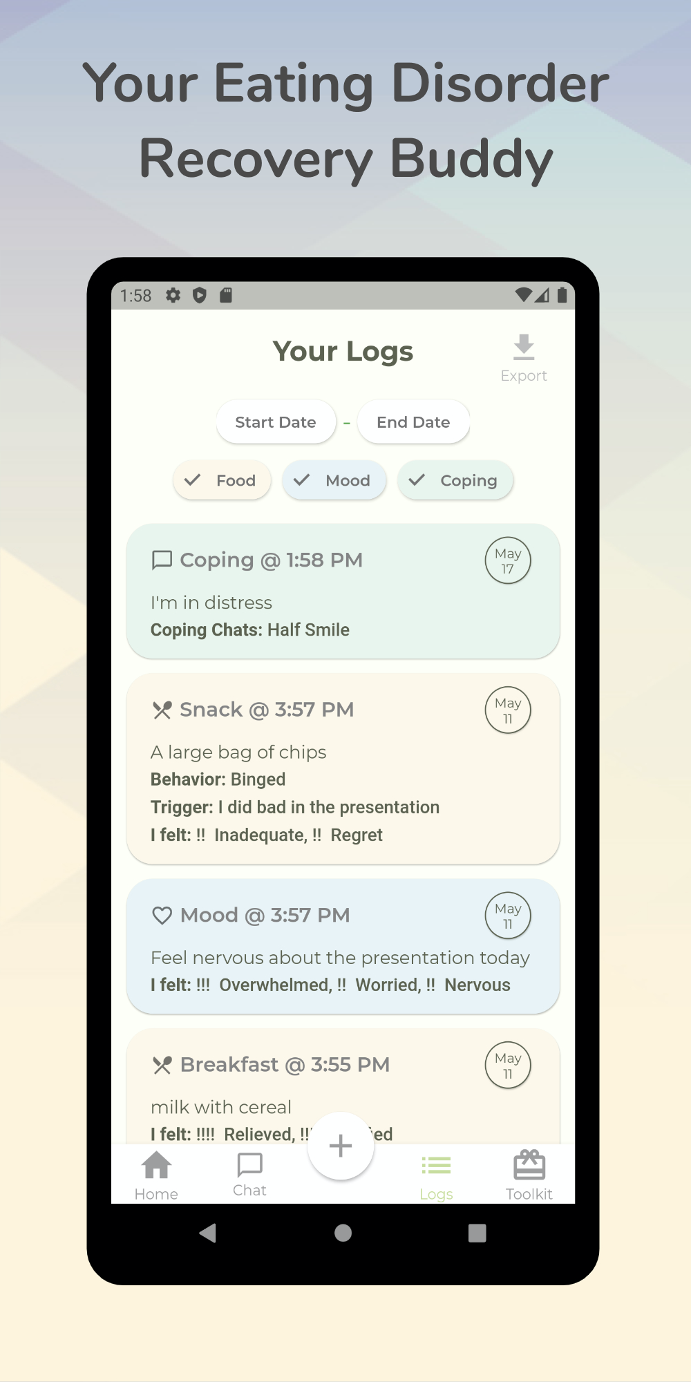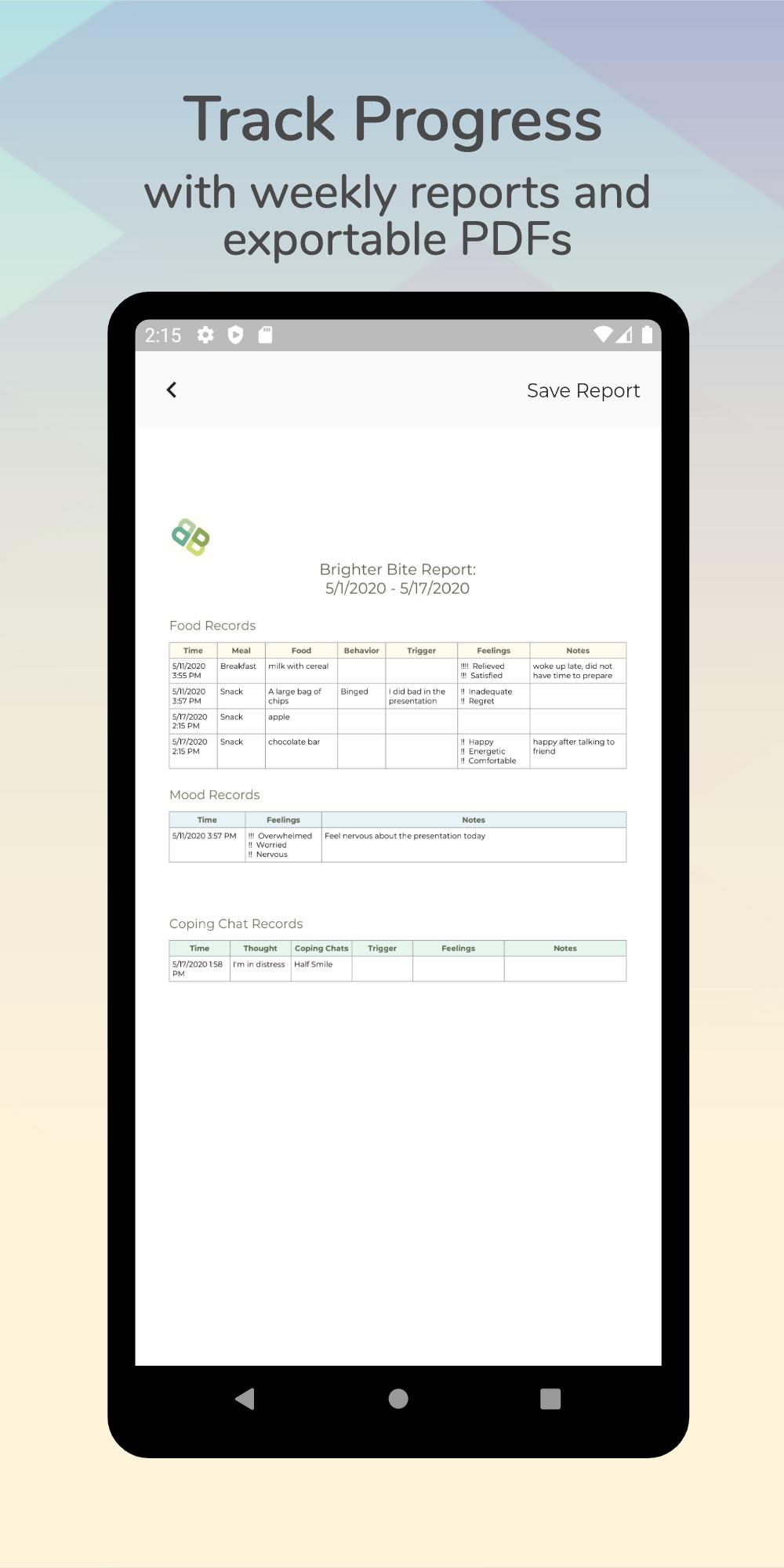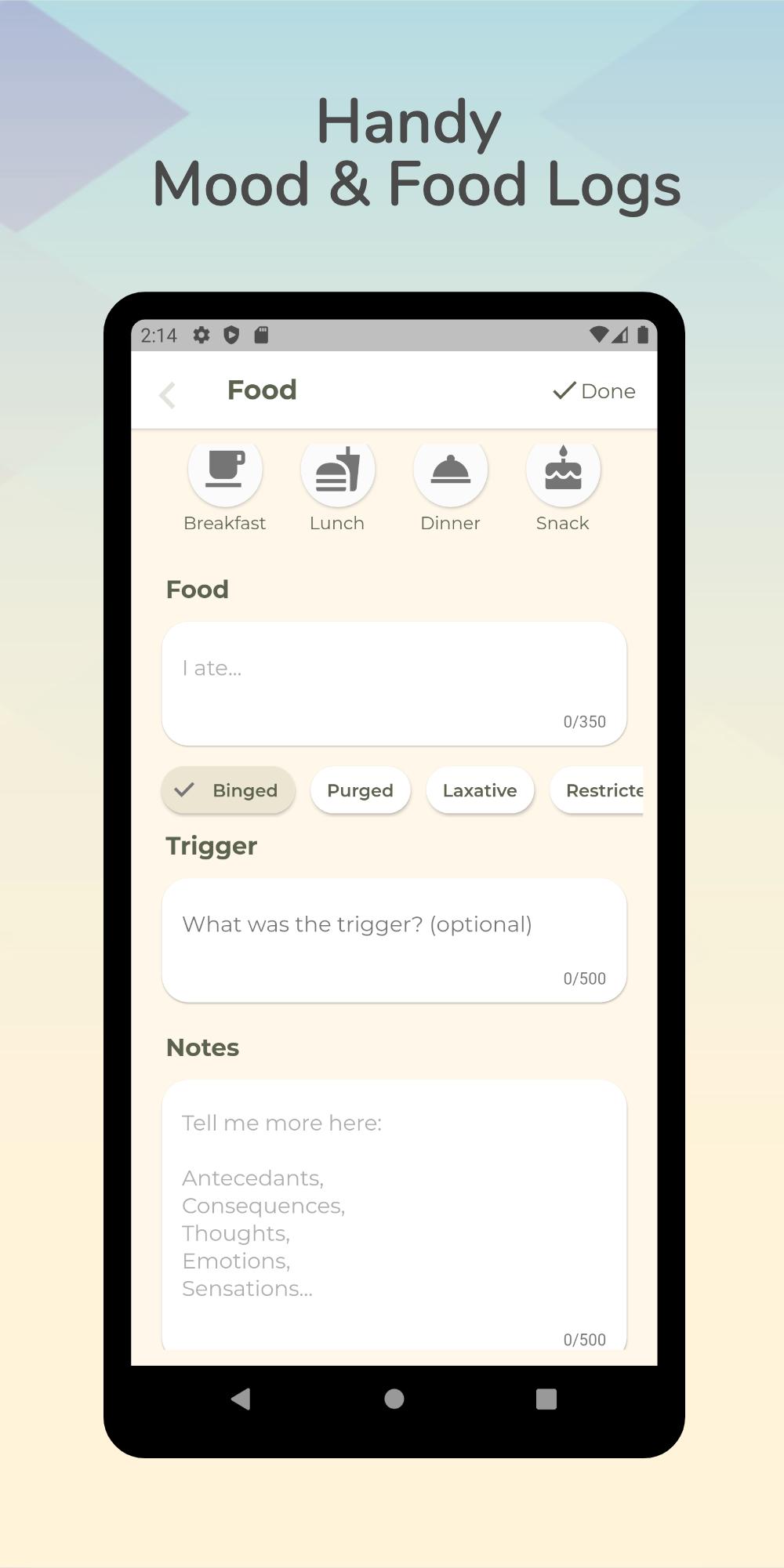 ✔ Verfolgen Sie problemlos das Verhalten von Mahlzeiten und Essstörungen